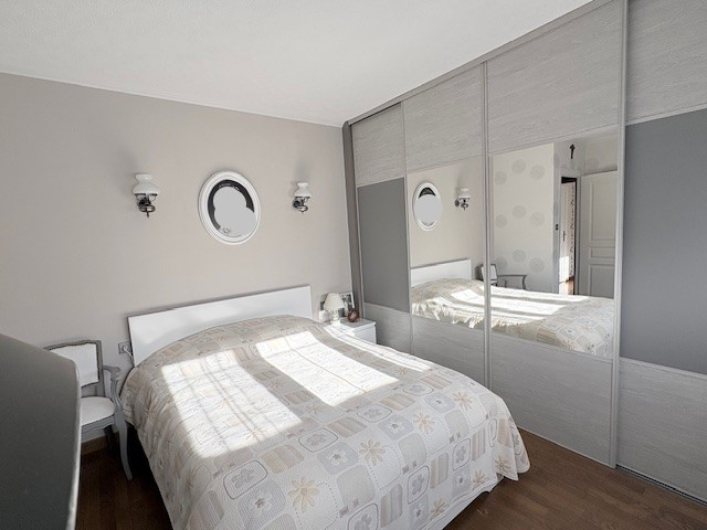 Au 1er étage : un pallier desservant 3 chambres dont une en enfilade, de 9-10 et 16m2, une salle de bains avec wc, douche et baignoire, de nombreux placards.