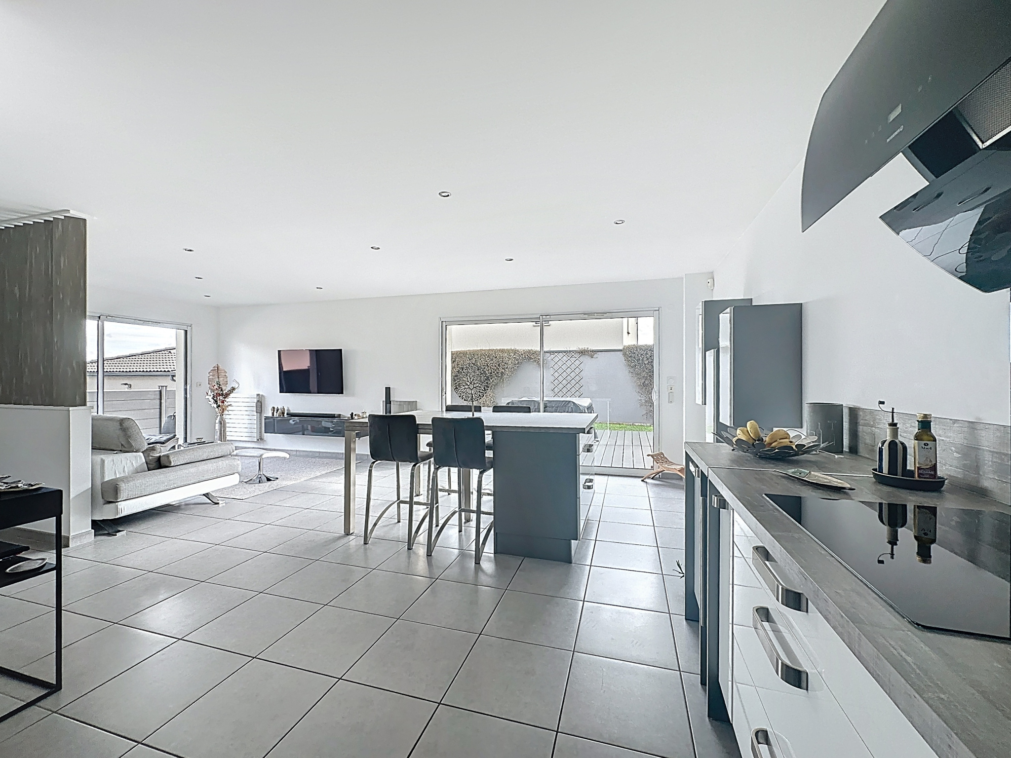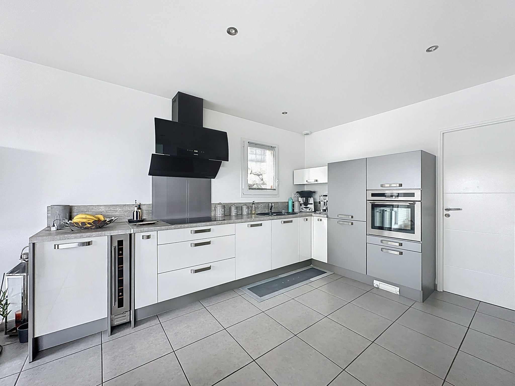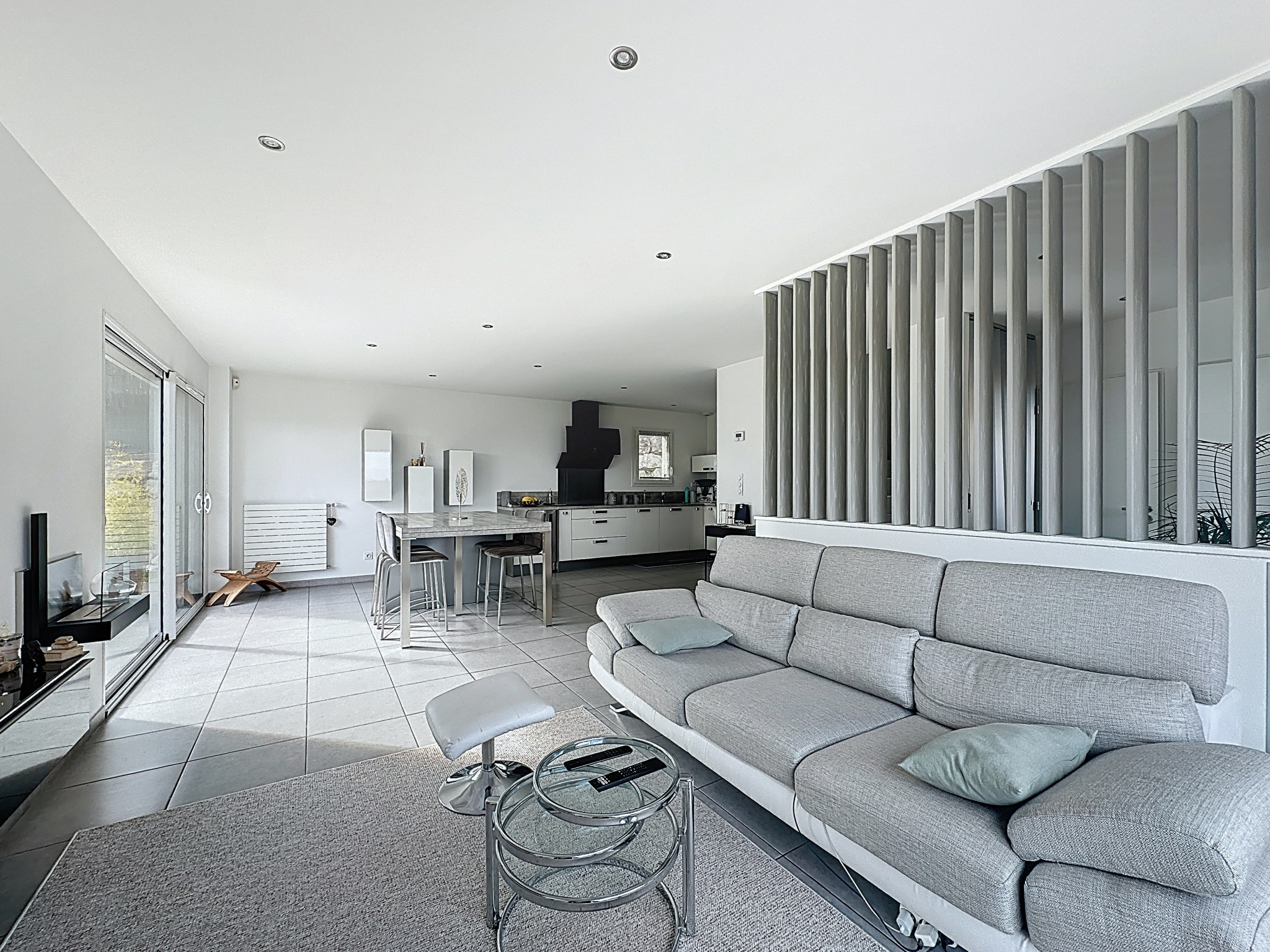 Nichée dans un environnement calme et privilégié à Pollionnay, cette maison contemporaine édifiée en 2015 séduit par ses prestations de qualité et sa vue imprenable sur Lyon.