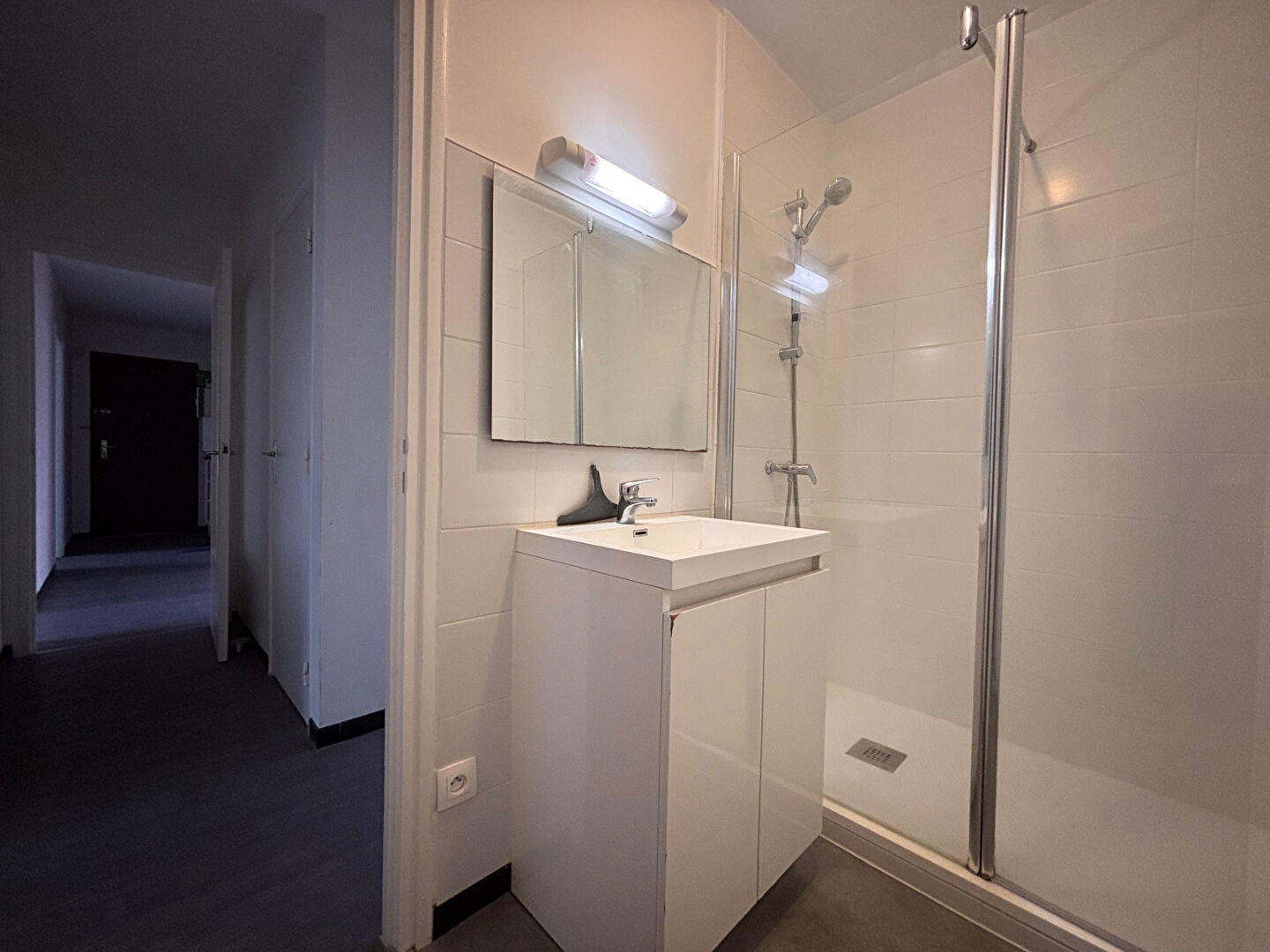 La salle d'eau a été entièrement refaite. La chambre principale donne également sur le balcon, avec une vue sur la basilique Saint-Donatien.