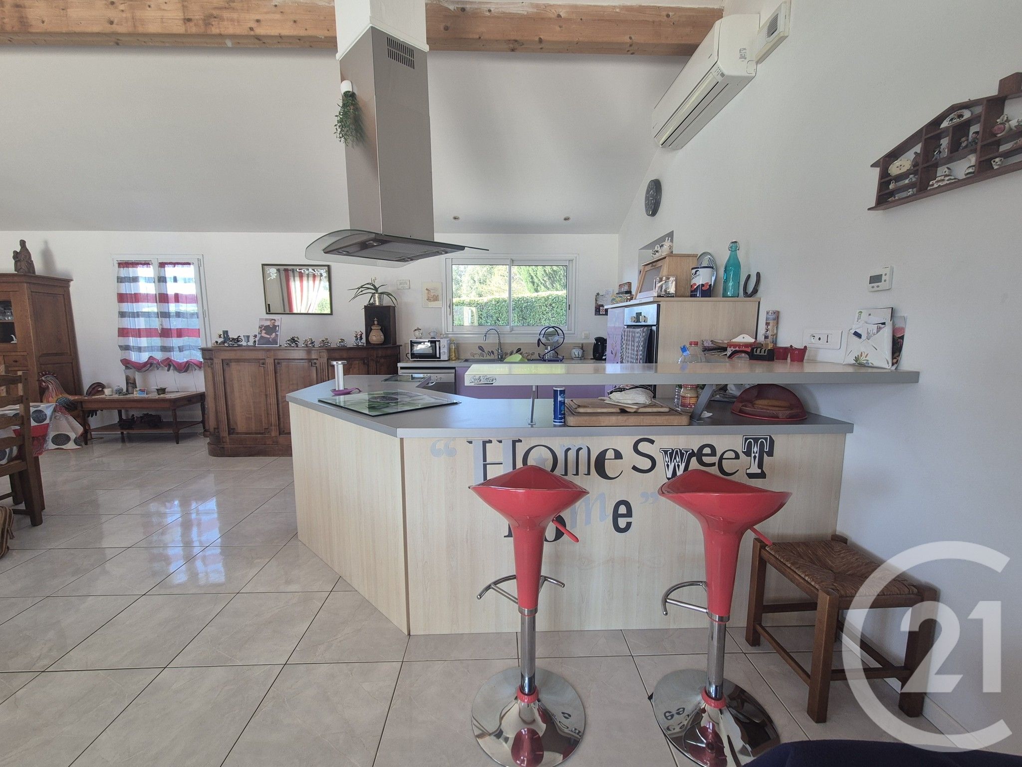 De l'autre, le c½ur de la maison : une pièce de vie de 50 m², baignée de lumière, avec cuisine ouverte. Equipée d'un poêle à bois qui apporte une ambiance chaleureuse en hiver et de la climatisation réversible qui garantit de la fraicheur en été.