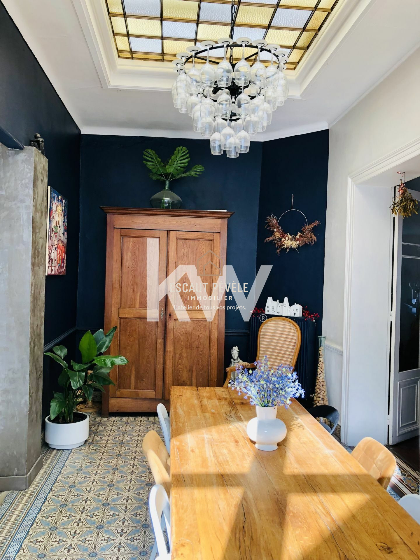Au rez-de-chaussée, vous trouverez , une grande cuisine ouverte sur la salle à manger, agrémentée d'une ancienne verrière apportant luminosité et élégance.