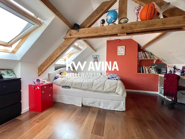 À l'étage, un palier mène à une salle de bains et trois chambres réparties sur deux niveaux, offrant charme et fonctionnalité.
