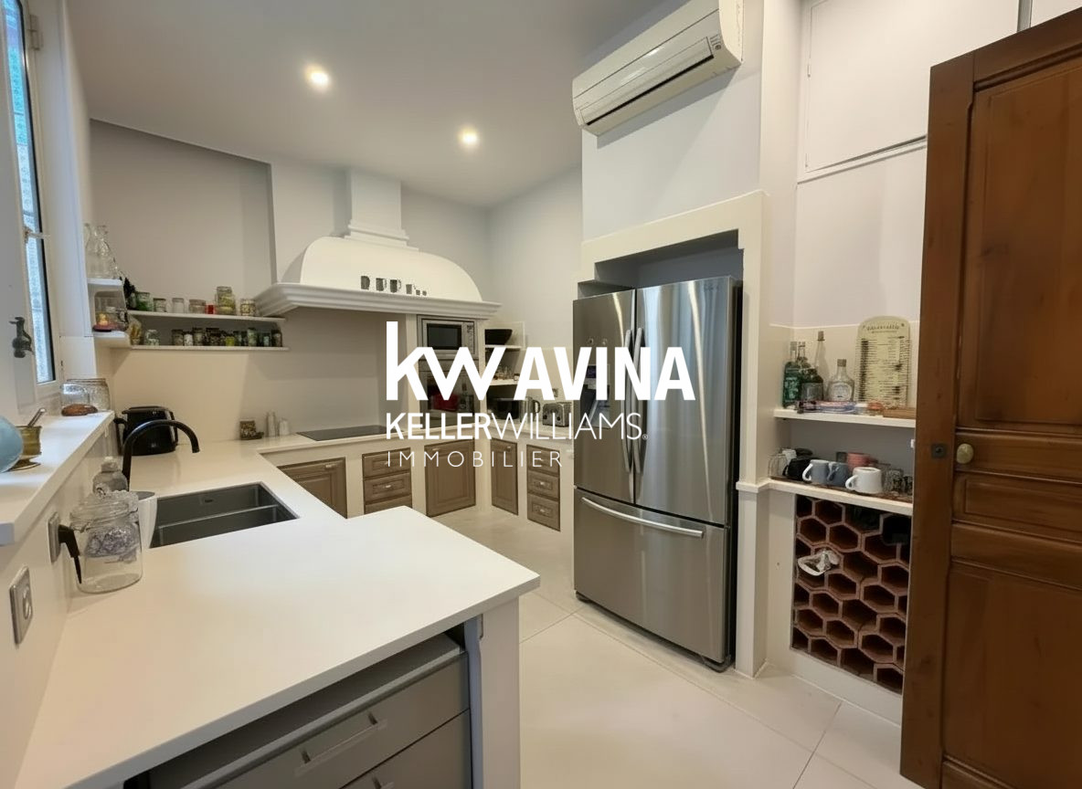 La cuisine indépendante de près de 14 m² ainsi que les espaces annexes (buanderie, dégagements, placards) viennent compléter une organisation fonctionnelle et bien pensée.