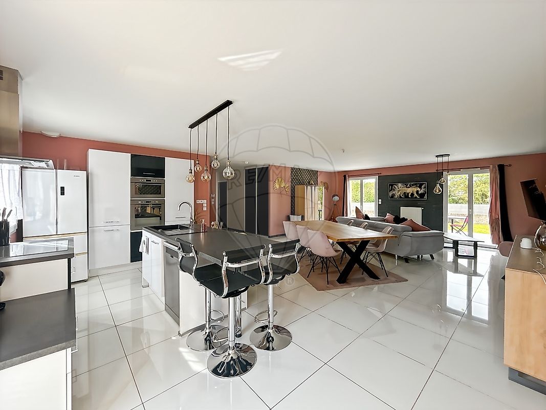 Avec environ 110 m² habitables, cette maison se distingue par ses volumes généreux et sa disposition fonctionnelle. La pièce de vie, véritable cœur de la maison, s’étend sur près de 62 m² et réunit salon, salle à manger et cuisine ouverte, aménagée et entièrement équipée, dans un espace lumineux et convivial.