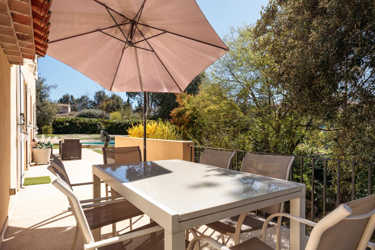 La propriété se compose d'une villa principale de 220 m² habitables ainsi que d'un appartement indépendant 3 pièces de 45 m², le tout sur un terrain plat, clos et arboré de 2 100 m².