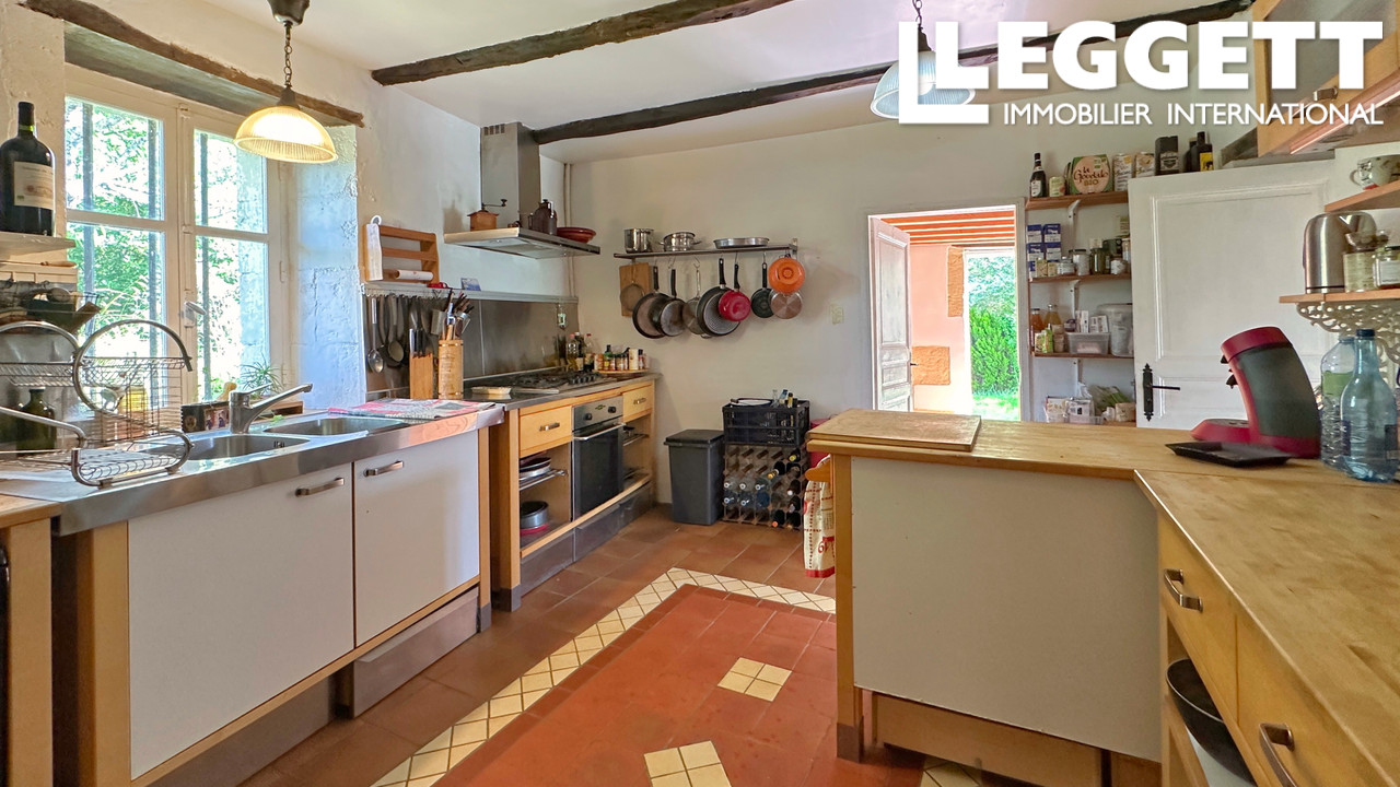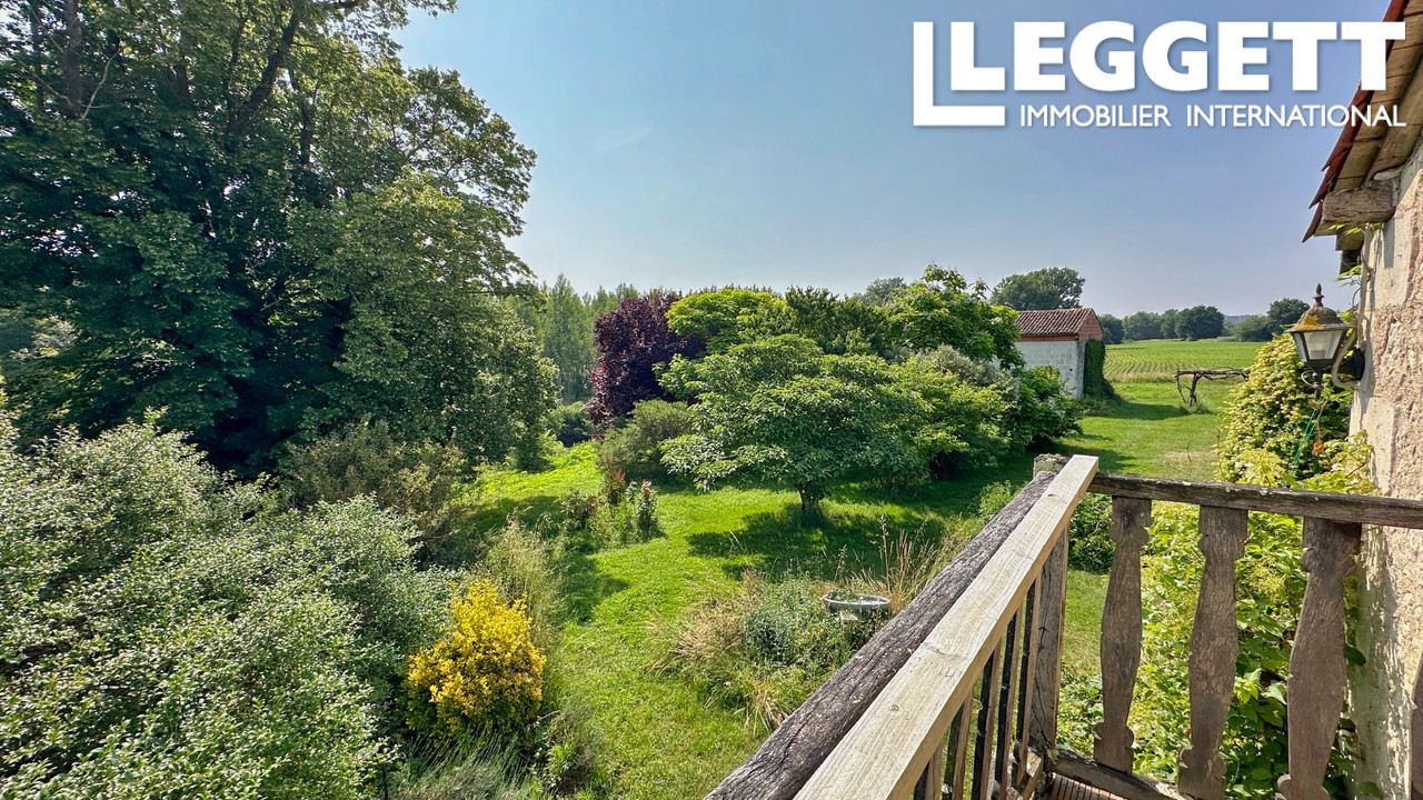 Le vaste terrain de 1,4 hectare comprend un magnifique jardin agrémenté de nombreuses essences d'arbres fruitiers et fleurs sauvages, une prairie et des bois, longeant la rivière avec un accès privé.