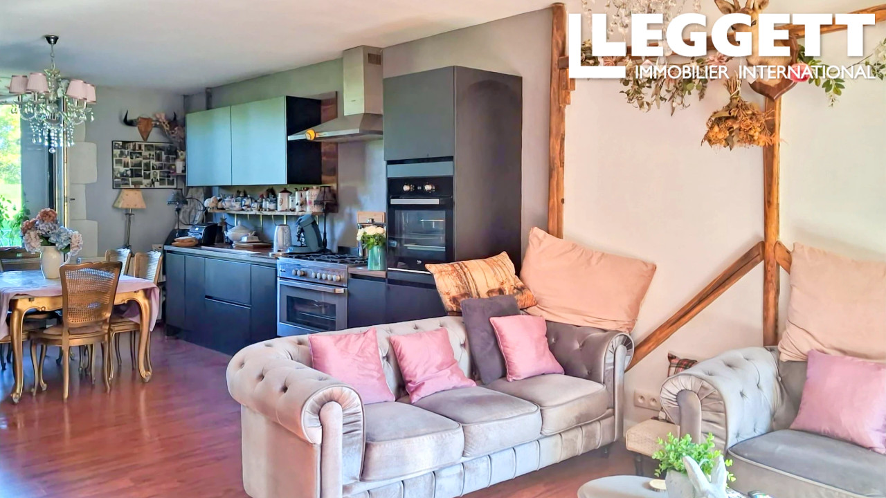 Le tout est implanté sur un terrain arboré de plus d'un hectare, comprenant jardins à l'avant et à l'arrière, vaste prairie et petit bois pour profiter pleinement de la campagne.