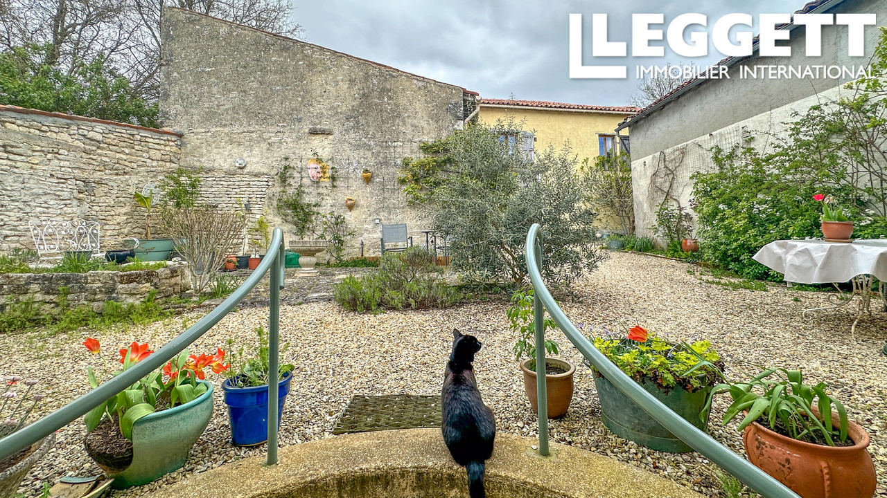La propriété dispose de deux jolies cours ainsi que d'un jardin privatif à l'arrière, agrémenté d'une piscine au sel et d'une terrasse couverte.