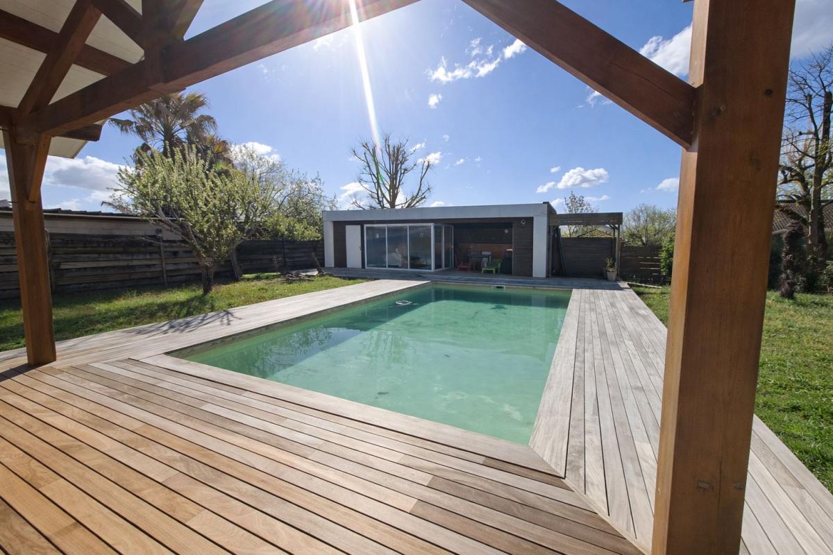 Implantée sur une parcelle entièrement clôturée, la propriété propose des extérieurs soigneusement aménagés. La piscine au sel de 8,5 x 4,5 m s'intègre harmonieusement à une terrasse en bois exotique. Un pool house complète l'ensemble avec une cuisine d'été, des sanitaires, une douche ainsi qu'une chambre indépendante, permettant d'accueillir famille, amis ou d'envisager un usage locatif.