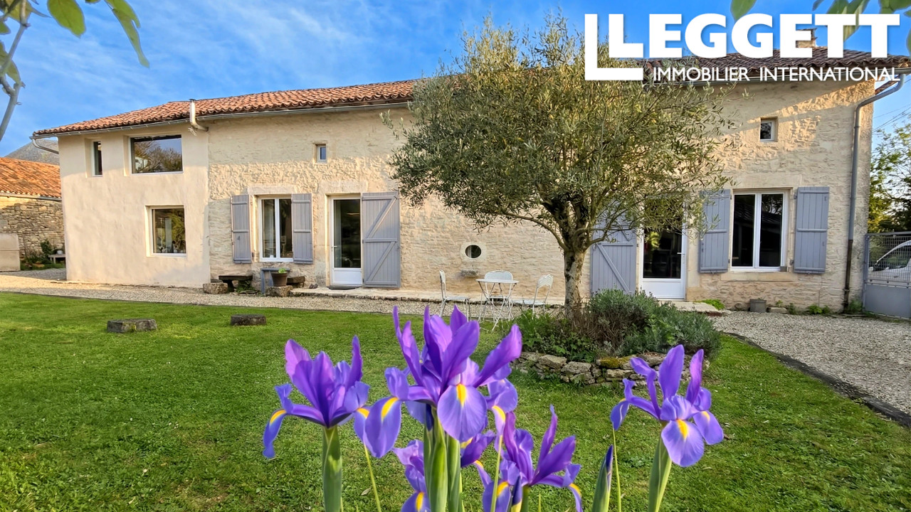 A43759SR16 - Située au calme à proximité de Ruffec et des axes rapides, cette magnifique maison charentaise en pierre d'environ 195 m² séduit par son authenticité et ses beaux volumes.