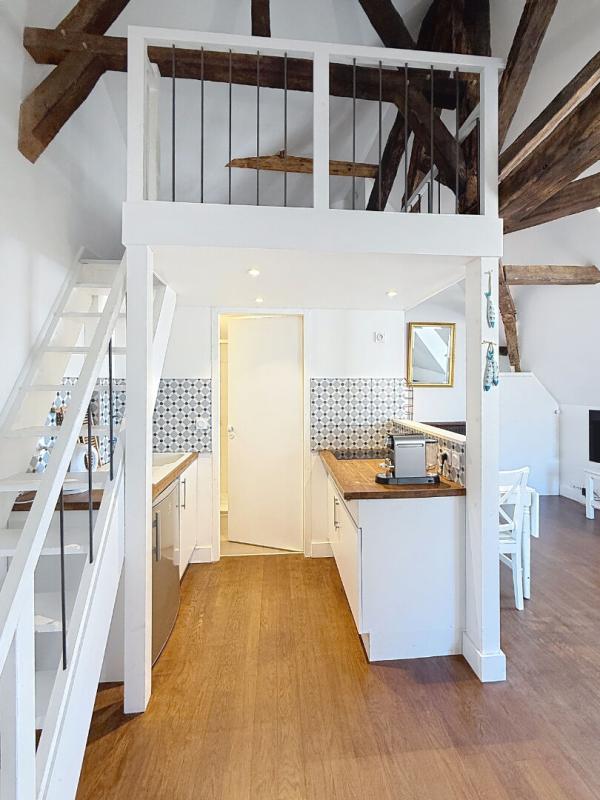D'une surface de 34 m² au sol (21 m² Loi Carrez), ce bien unique séduit immédiatement par son atmosphère et son charme authentique. Dès l'entrée, la pièce de vie révèle un espace chaleureux et lumineux, sublimé par une charpente ancienne apparente et une hauteur sous plafond remarquable qui apportent volume et caractère. La cuisine ouverte, aménagée et équipée, s'intègre harmonieusement à cet espace convivial, pensé pour profiter pleinement du lieu.