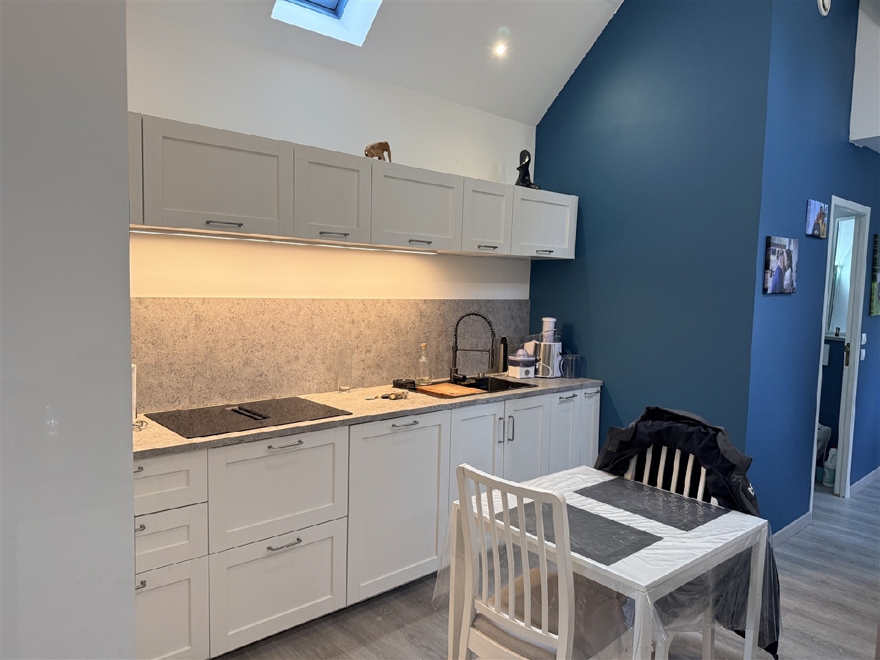 Cuisine aménagée et équipée, séjour, dégagement avec poele à granulés, chambre, salle d'eau-wc. Etage: pièce mezzanine. Chauffage poele à granulés. A l'écart : Garage avec arrière cuisine. Carport. Panneau solaire. Portail électrique. Dependance. Poulailler.Terrain plat 1153m².