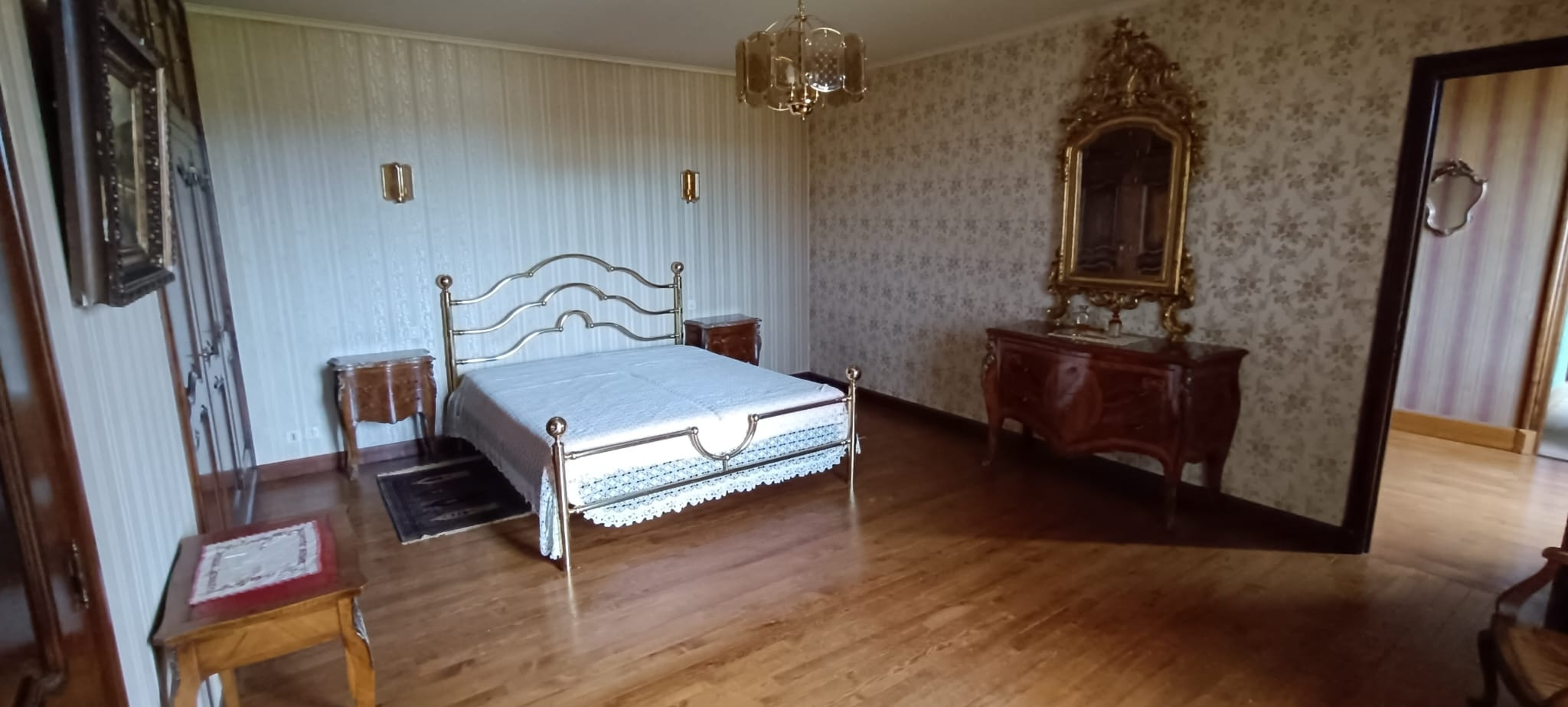 Au premier étage, le palier distribue 3 grandes chambres, une salle de bain avec wc.