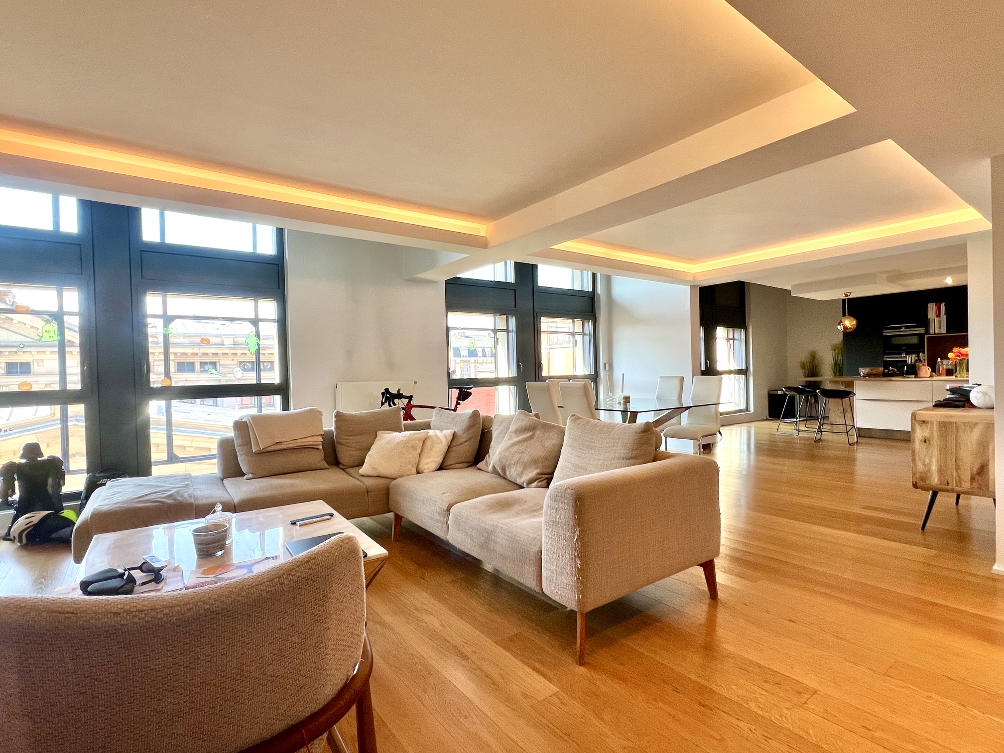 Dans immeuble historique en pierre de taille, très bel appartement 4/5 pièces duplex, situé au 4 étage avec ascenseur. Comprenant : une entrée sur un vaste séjour double et cuisine équipée ouverte. Un cellier et un wc visiteurs. 0 l'étage, 2 chambres d'enfants avec placards, une salle de douche et un wc. Une suite parentale avec salle de bains (baignoire, douhce et wc) ainsi qu'un dressing et un débarras.