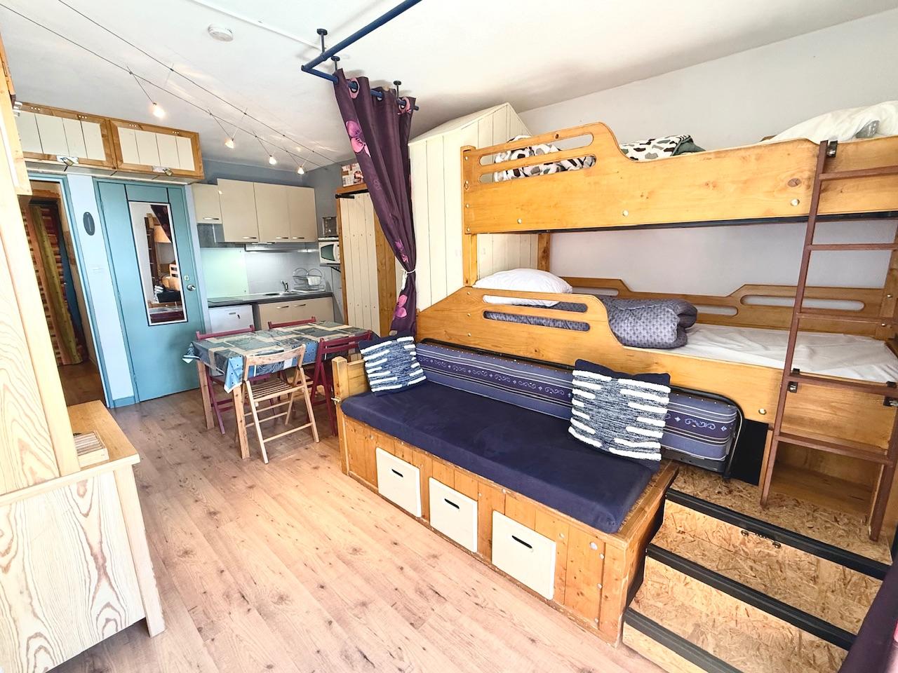 AX 3 DOMAINES, Idéalement placé face aux pistes de skis, Studio de 25 m² + CAVE, situé dans une copropriété de 32 lots principaux comprenant entrée, pièce à vivre avec coin cuisine, salle de bains-wc, rangements et balcon donnant sur pistes de ski. Vendu meublé avec cave + casier à skis. Charges courantes/an : 799 €. Ravalement de façade à venir dont 6 238 € déjà payés, prévoir appel de fonds en 2028 de 2 570 € . Honoraires à la charge du vendeur. Montant estimé des dépenses annuelles d'énergie pour un usage standard : entre 700 et 1 000 euros. Prix moyens des énergies indexés en 2022.