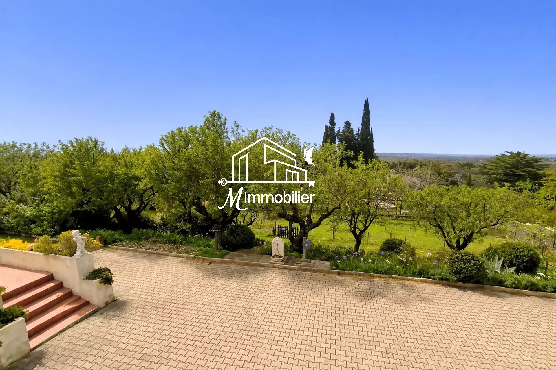 Un cadre idyllique avec un parc arboré méditerranéen composé d'une centaine d'Oliviers, 60 Amandiers, arbres fruitiers, multiples variétés de plantes méditerranéennes, entourant l'espace Piscine de 12 m avec plage intégrée et vue dégagée et son terrain de pétanque et air de jeux.