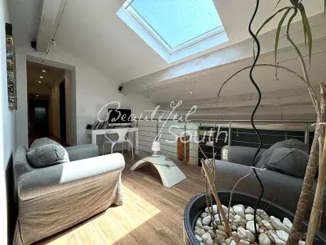 À l’étage, une mezzanine ouverte apporte du cachet et distribue quatre chambres supplémentaires ainsi qu’une terrasse, accompagnées d’une salle d’eau spacieuse et d’un second WC.