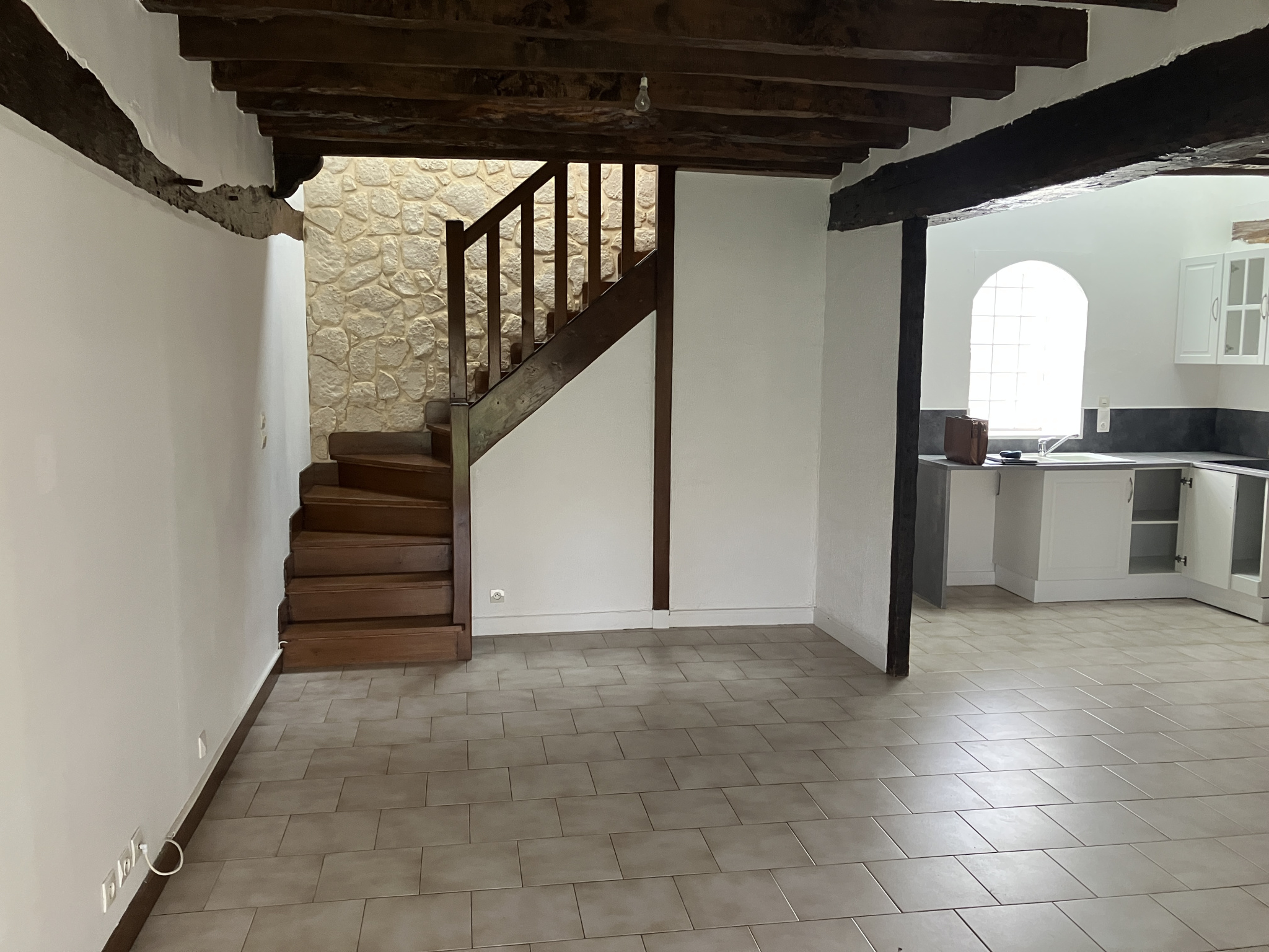 Le logement comprend au rez-de-chaussée : entrée avec placards, salon-salle à manger de 17.09 m2, cuisine américaine aménagée de 13.89 m2, petite buanderie, wc. À l'étage : palier desservant de 5.42 m2 formant bureau, deux chambres (11.46 m2 et 10.50 m2), salle de douches/wc de 3.63 m2.