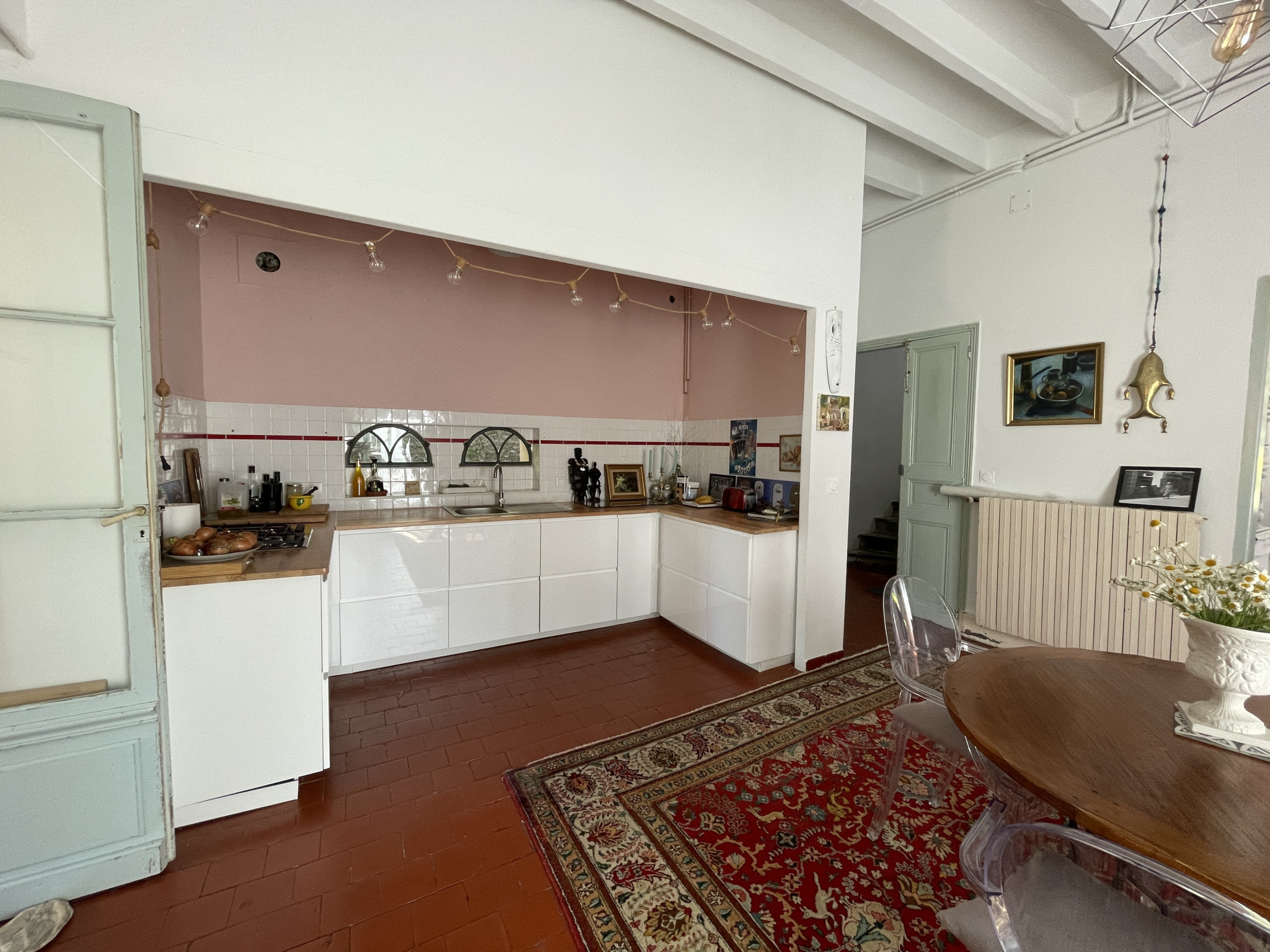 La maison , offrant de beaux volumes est composée de pièces de vie spacieuses et lumineuses donnant sur un balcon ainsi qu'une agréable véranda avec vue sur le jardin. A l'étage, 4 confortables chambres dont deux avec petit balcon . Sur le terrain, un mazet à rénover permet d'aménager un espace de vie supplémentaires.