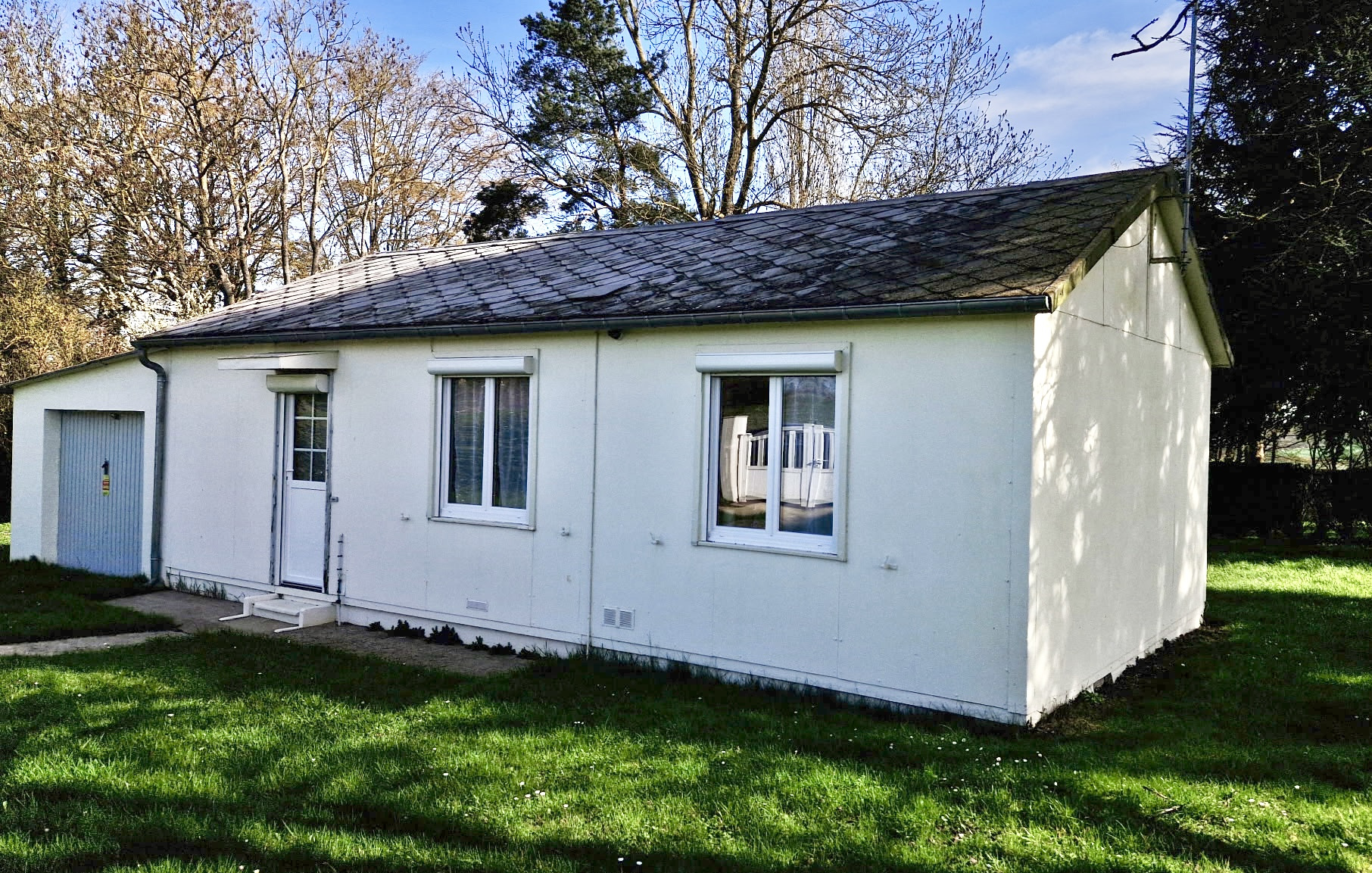 Ce pavillon indépendant de 1965 (type préfabriqué), habitable de plain-pied, comprenant :