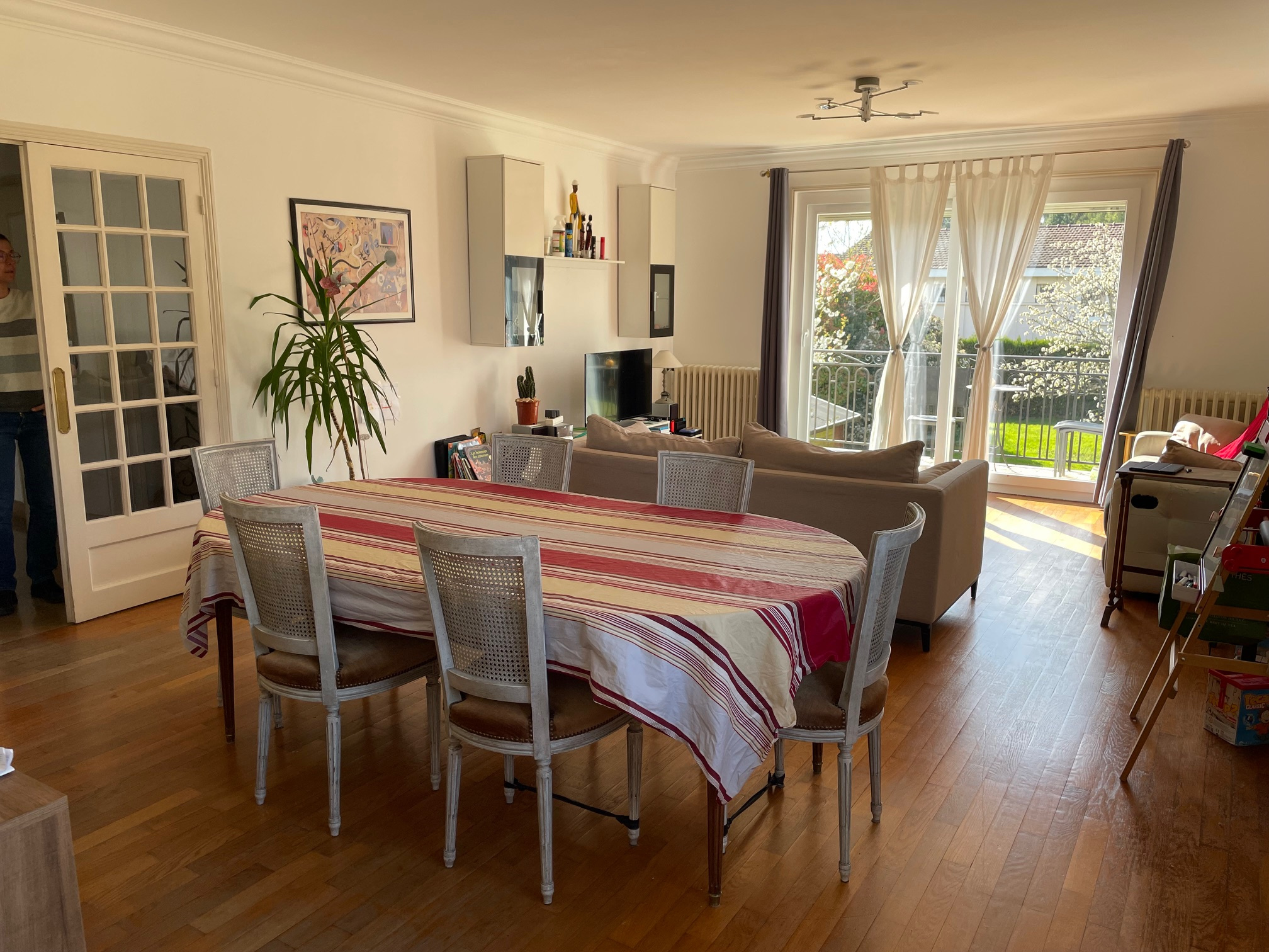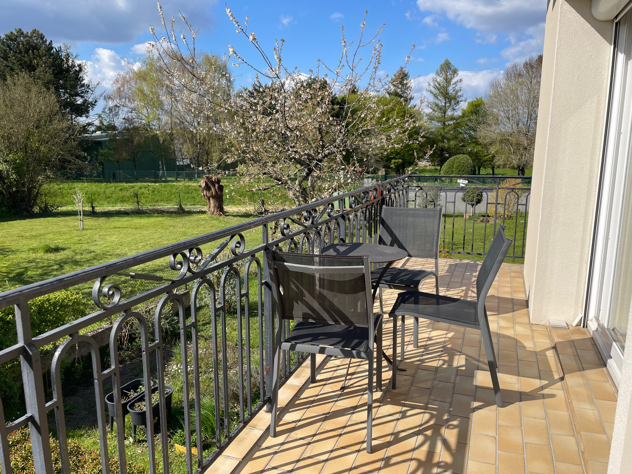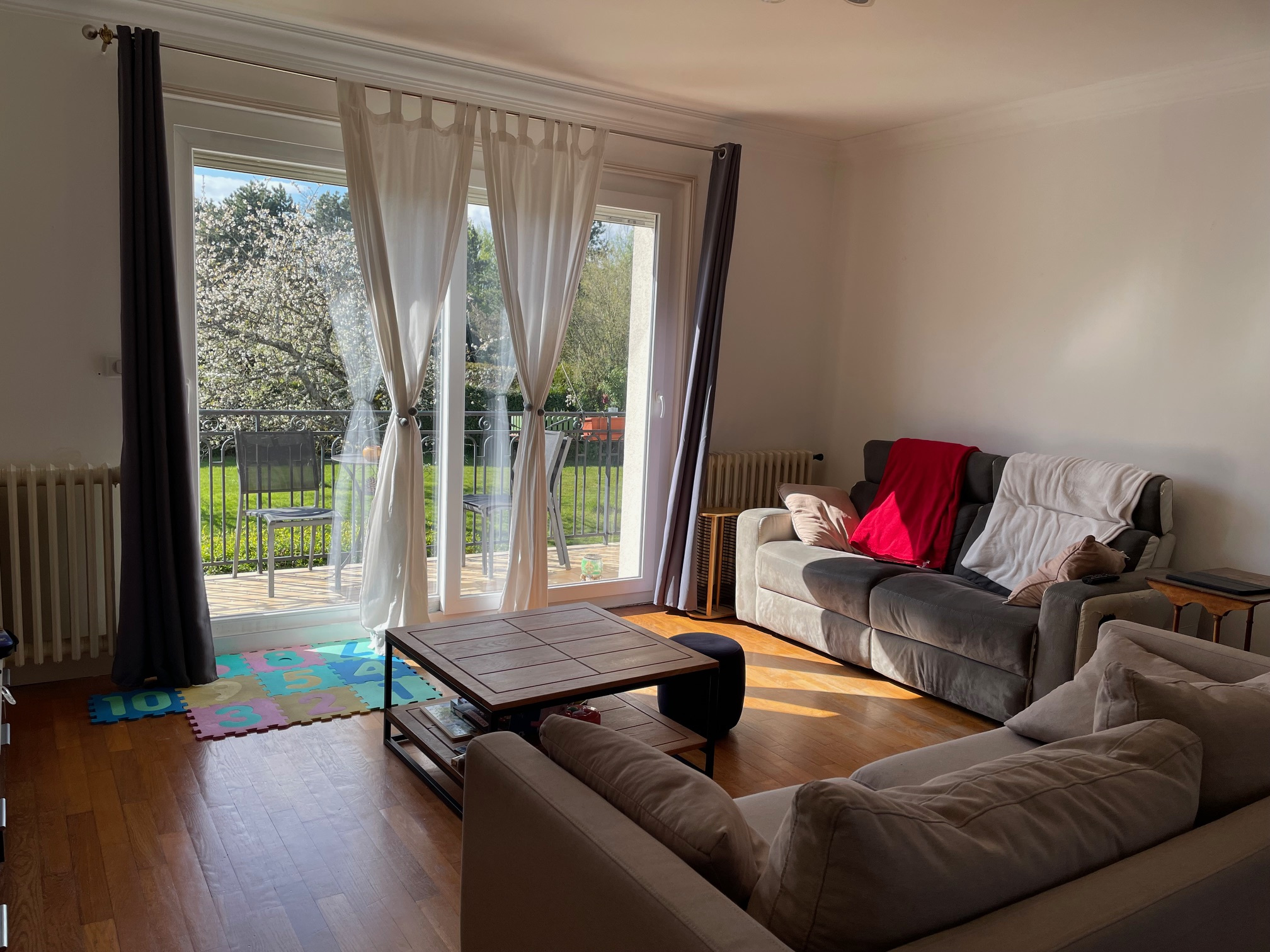 A l'étage : cuisine équipée, beau séjour-salon donnant accès à un balcon, 3 chambres, bureau, salle de bains, WC, dégagement et couloir -
