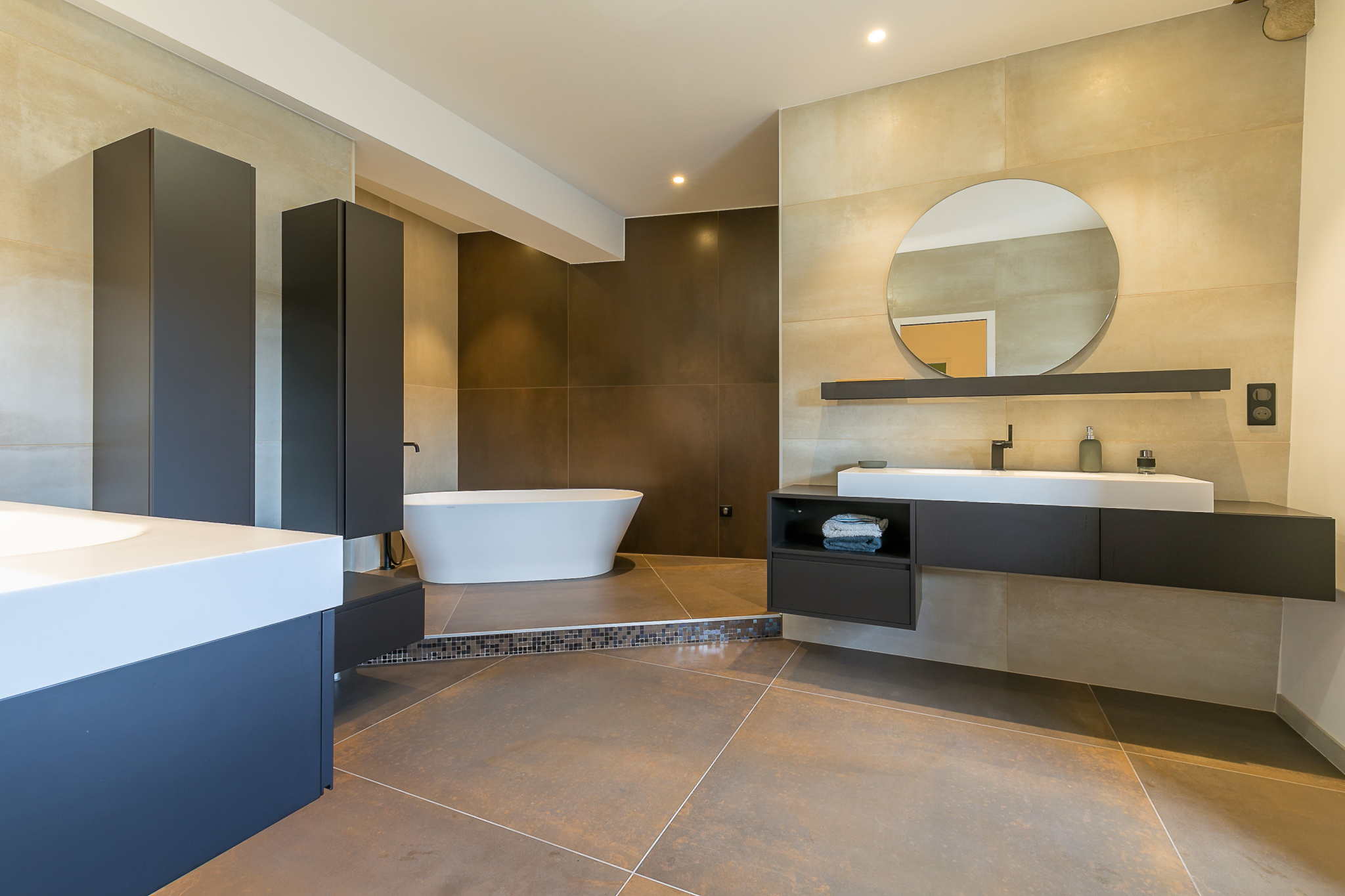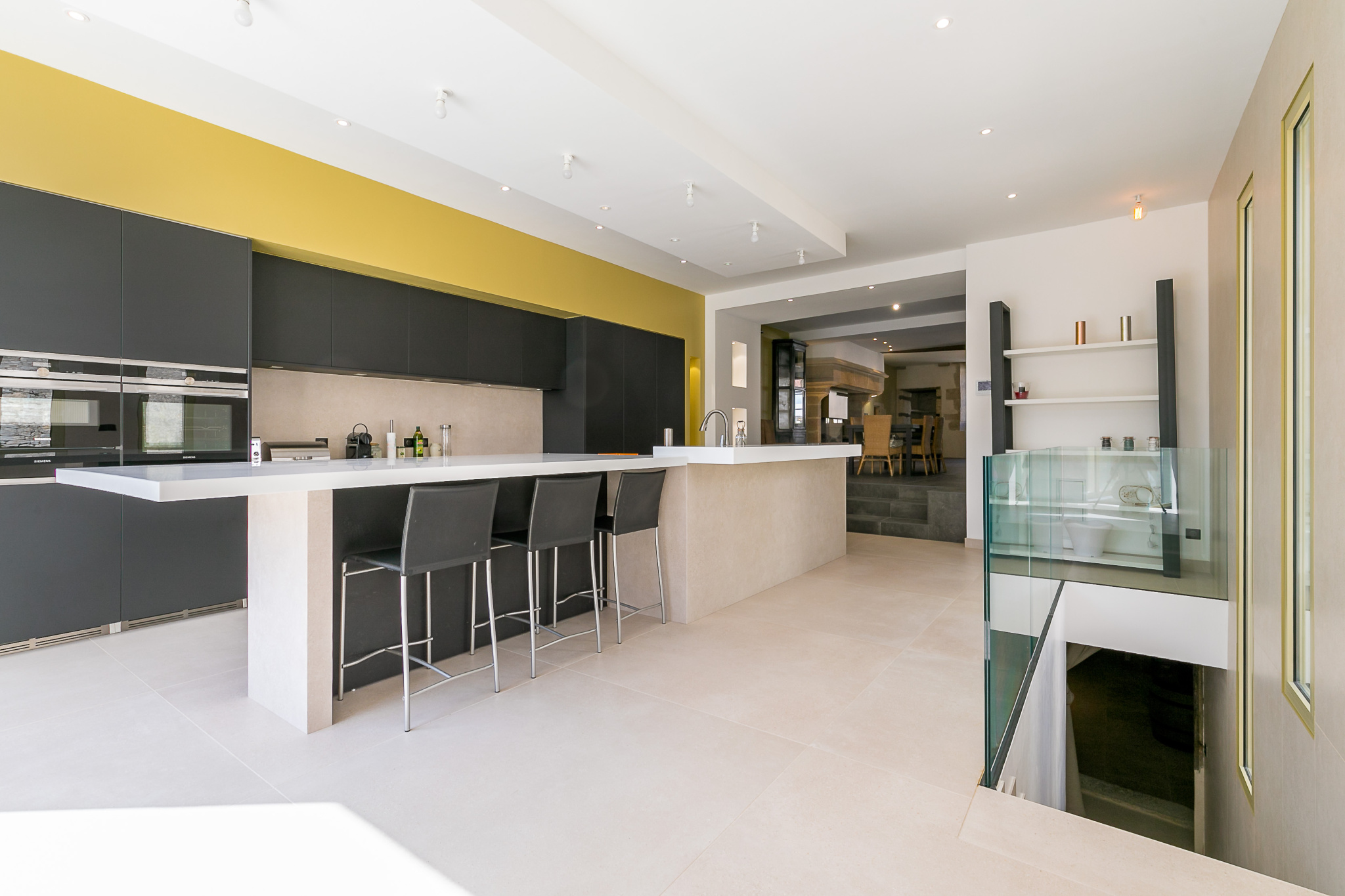 Dont un salon-séjour de 90m2 avec une superbe cheminée ancienne, une cuisine US entièrement équipée avec ilot central donnant sur terrasse, 5 suites parentales avec salles d'eau privatives, un studio, ainsi qu'une chambre supplémentaire.
