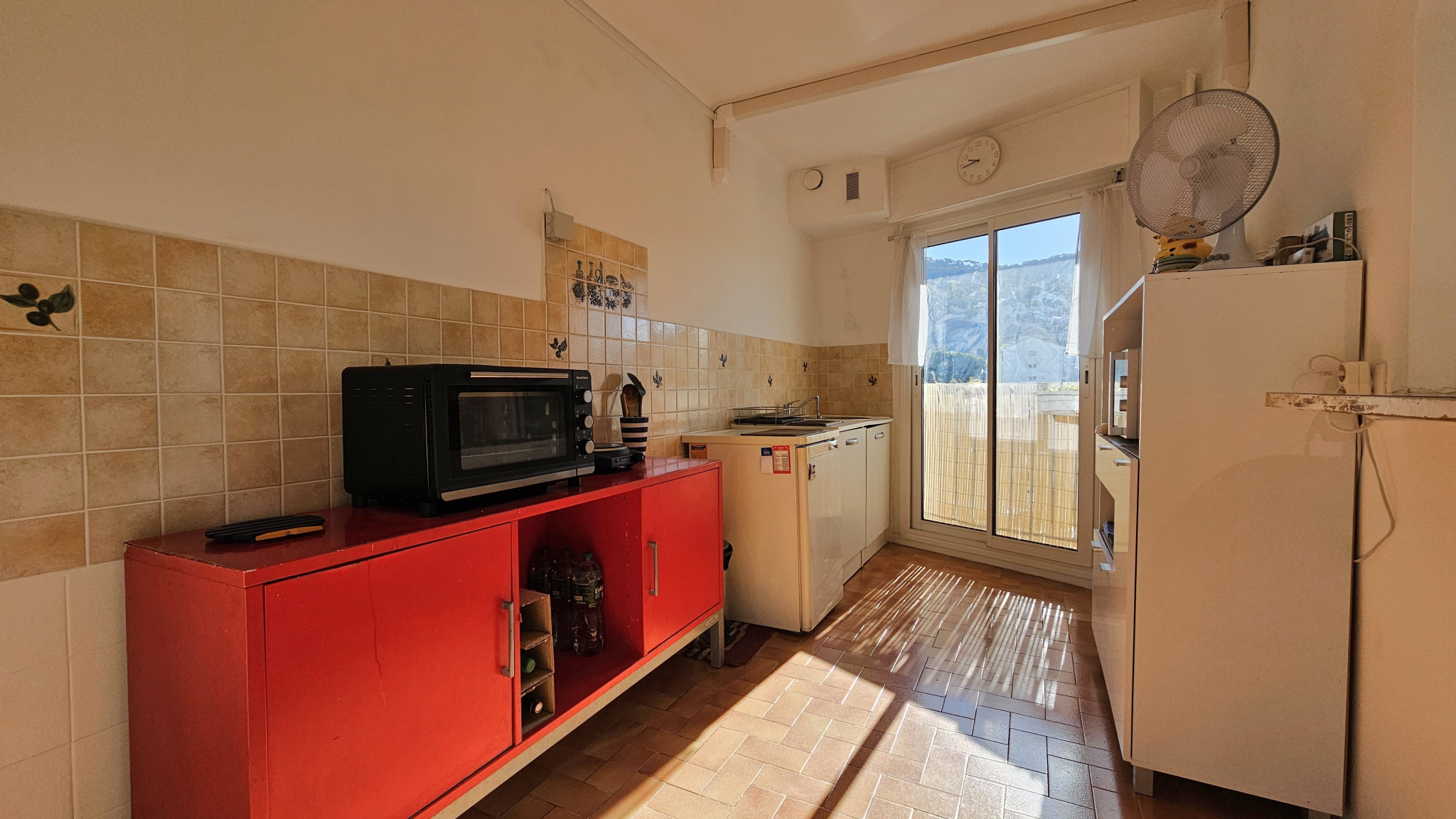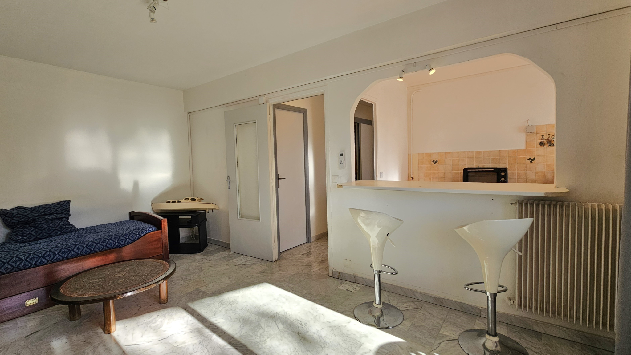 L'appartement propose un séjour lumineux, une cuisine séparée, le tout ouvrant sur un agréable balcon avec vue dégagée sur le Paillon.