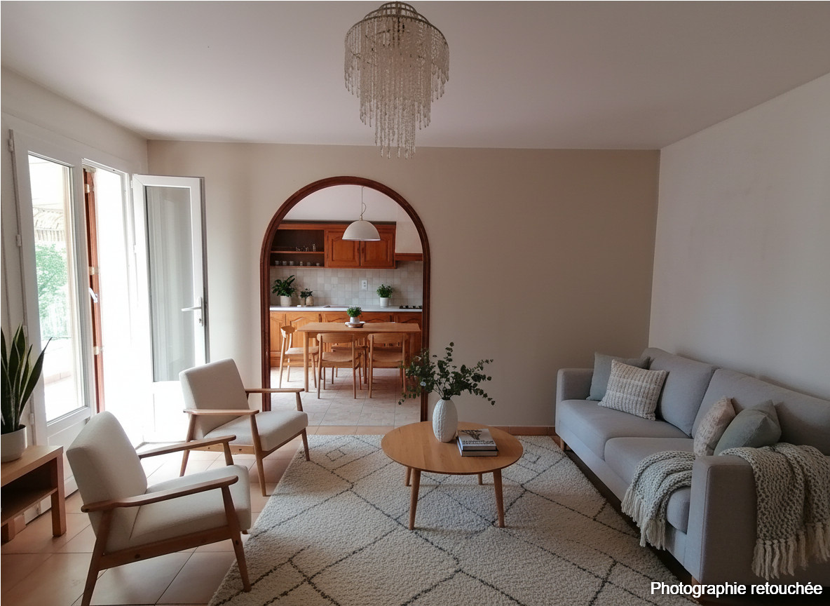 Au rez-de-chaussée : un T1 indépendant comprenant un séjour, une cuisine ainsi qu'une salle d'eau avec WC, idéal pour un investissement locatif ou un espace indépendant.