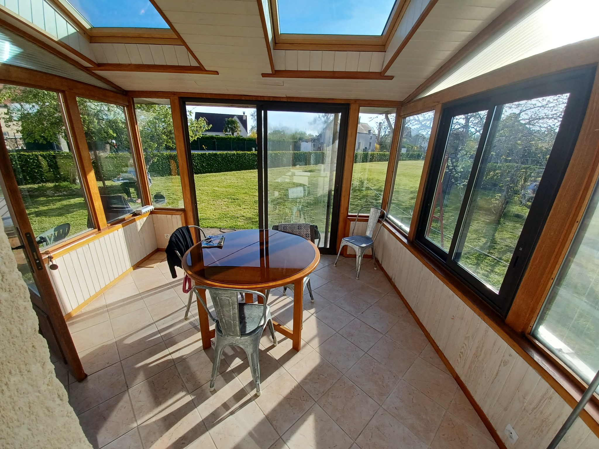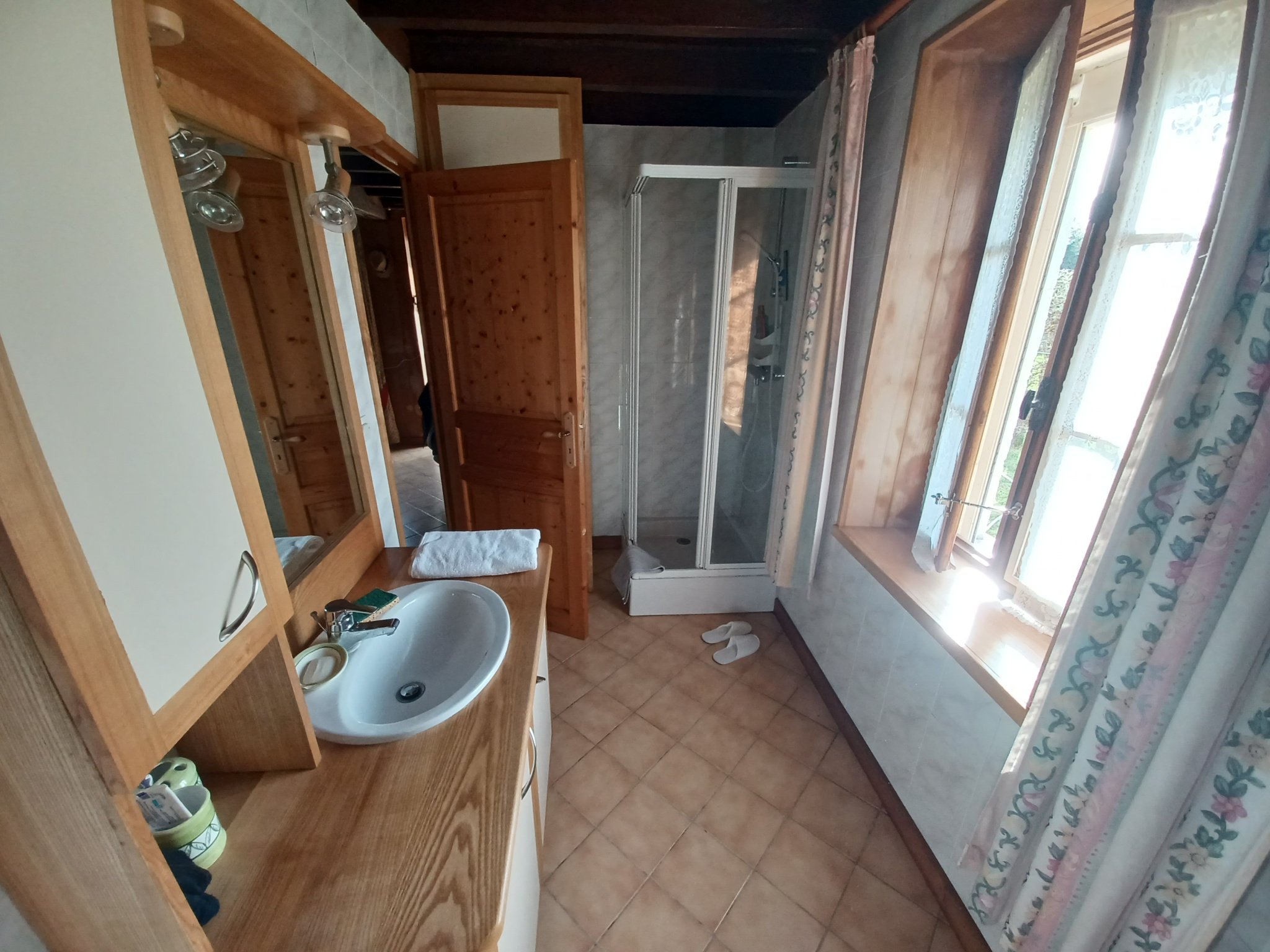 Charmante maison ancienne, habitable de suite, comprenant en rez de chaussée : véranda avec vue sur le jardin et camapgne environnante, grand séjour avec coin cuisine et cheminée/insert, une chambre, une salle d'eau avec WC.