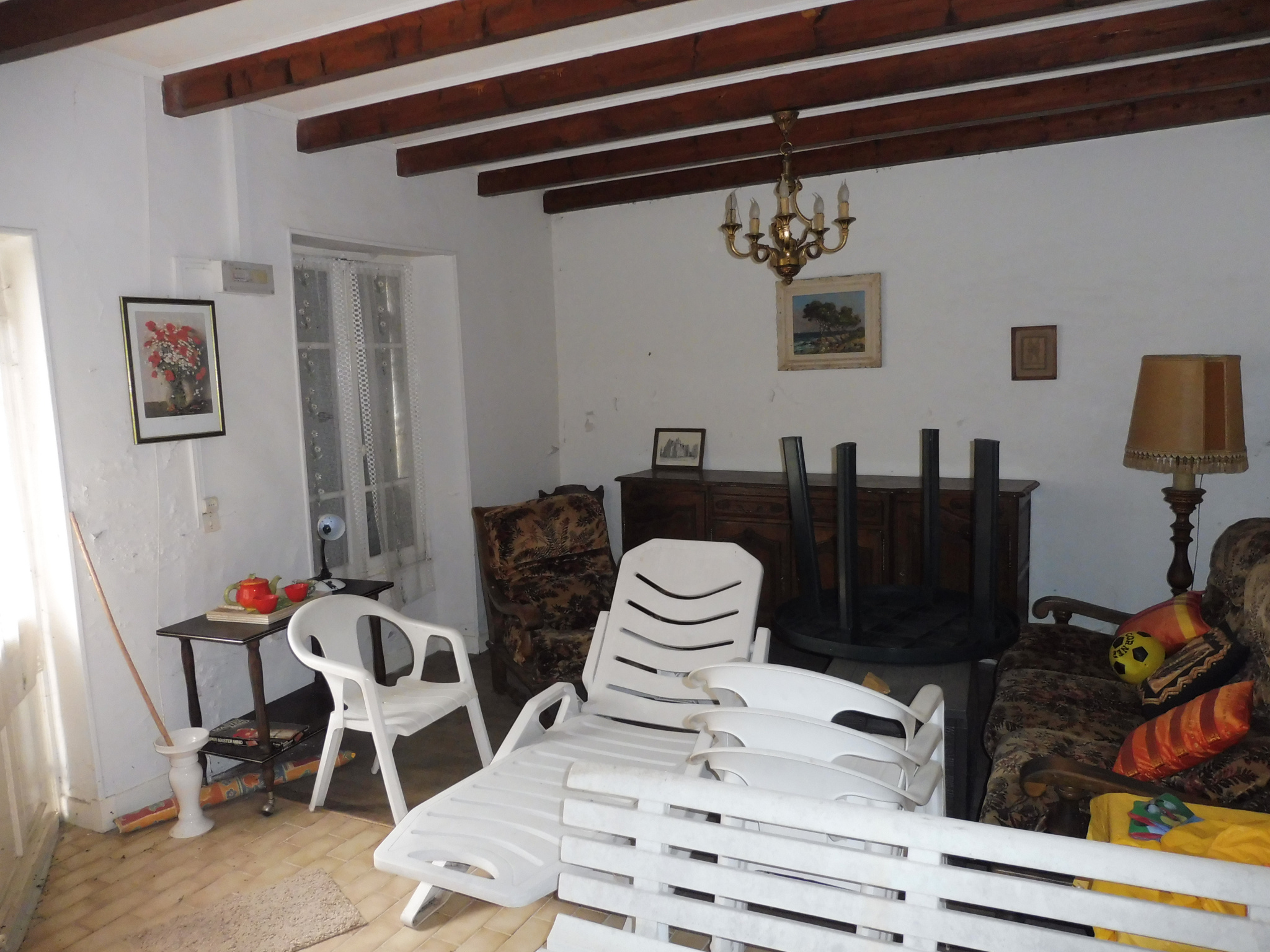 Maison principale comprenant en rez de chaussée: entrée, séjour avec cheminée, salon, cuisine.