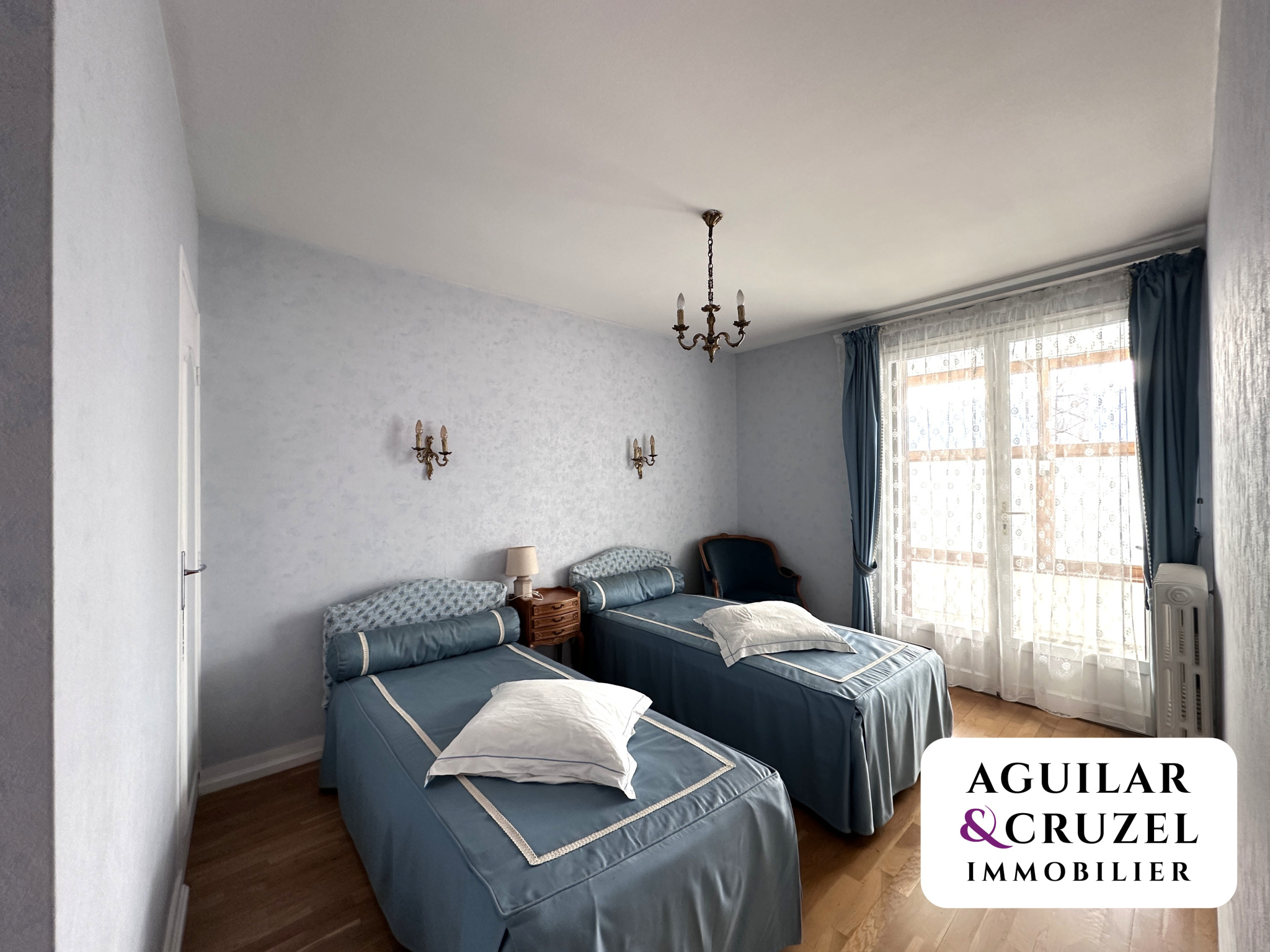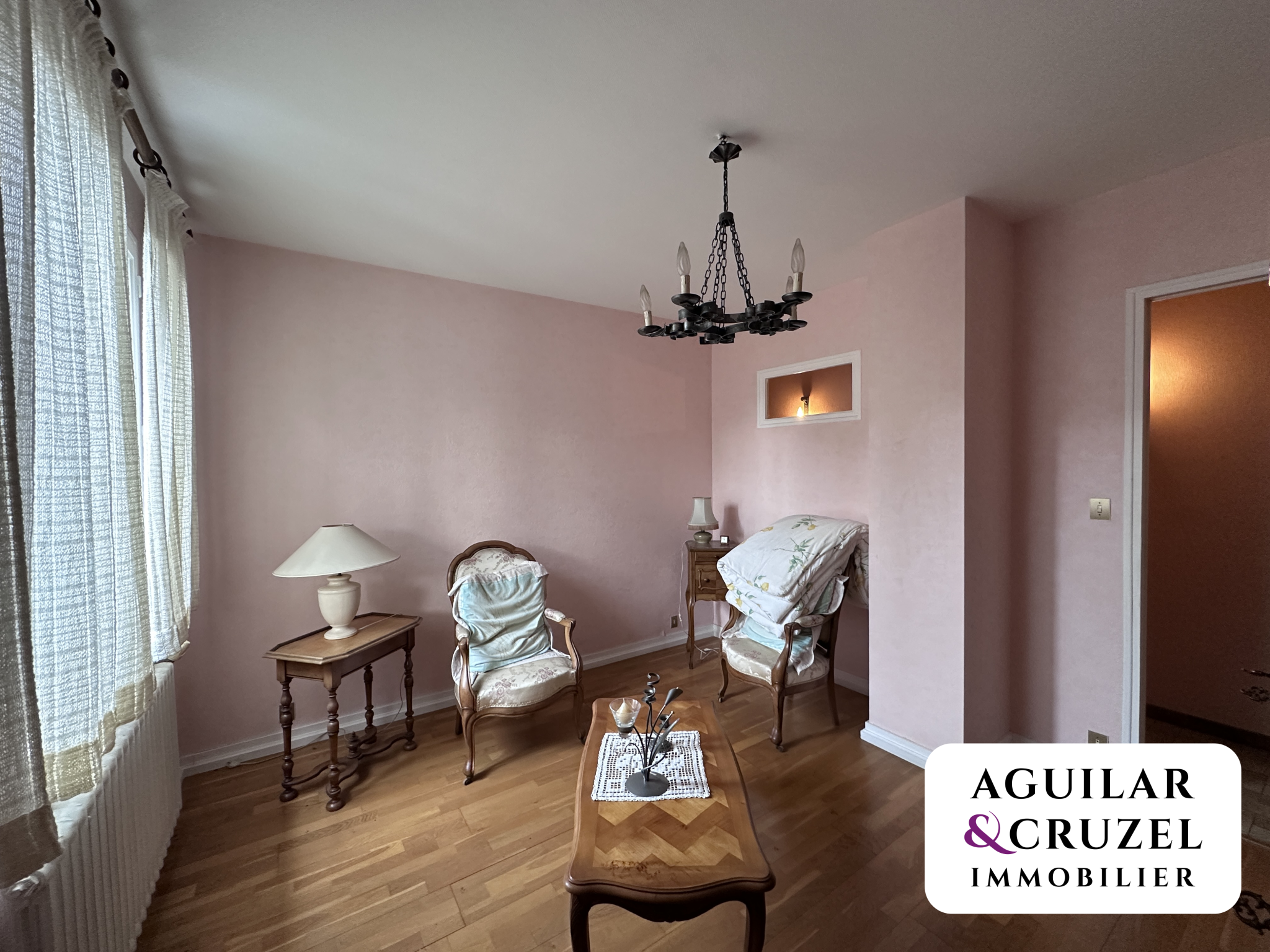 - à gauche, deux belles chambres en enfilade ainsi qu'une salle de bains ;-