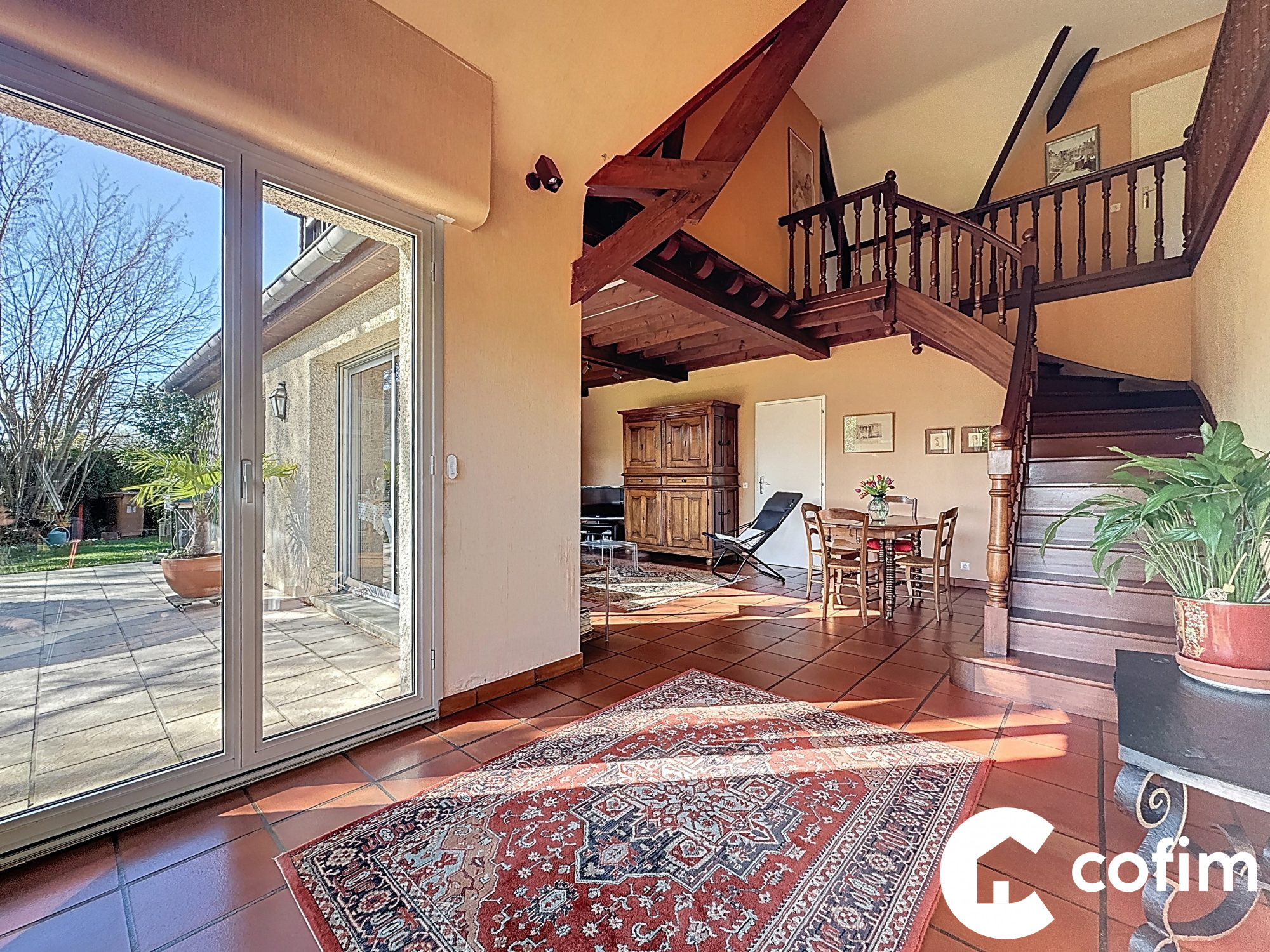 Elle offre un cadre de vie recherché, alliant charme de l'ancien, matériaux de qualité et belle luminosité. Vous y retrouverez de superbes éléments de caractère : tomettes en terre cuite parfaitement entretenues, cheminée en pierre, tuiles picon, fer forgé façonné à la main. Les larges ouvertures et les baies vitrées prolongent naturellement les espaces de vie vers la terrasse et le jardin, apportant une vraie sensation d'ouverture sur l'extérieur.