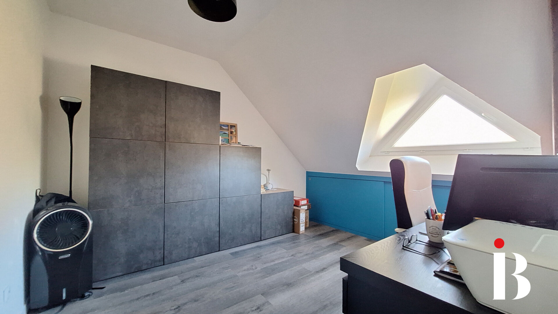 À l'étage : 3 chambres, un bureau et une seconde salle d'eau.