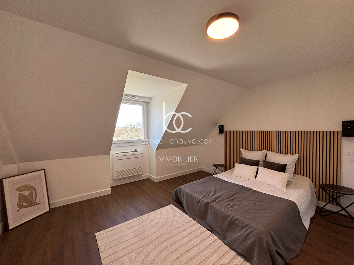 À l'étage, une élégante mezzanine surplombe l'espace de vie et distribue quatre belles chambres aux volumes généreux, offrant à chaque membre de la famille son espace d'intimité. L'une de ces chambres bénéficie d'une salle de bains privative, tandis qu'une deuxième salle d'eau avec WC et un toilette séparé viennent parfaire l'étage. Cette rénovation complète et réussie fait de cette maison un bien prêt à accueillir ses nouveaux propriétaires sans aucun travaux à prévoir.