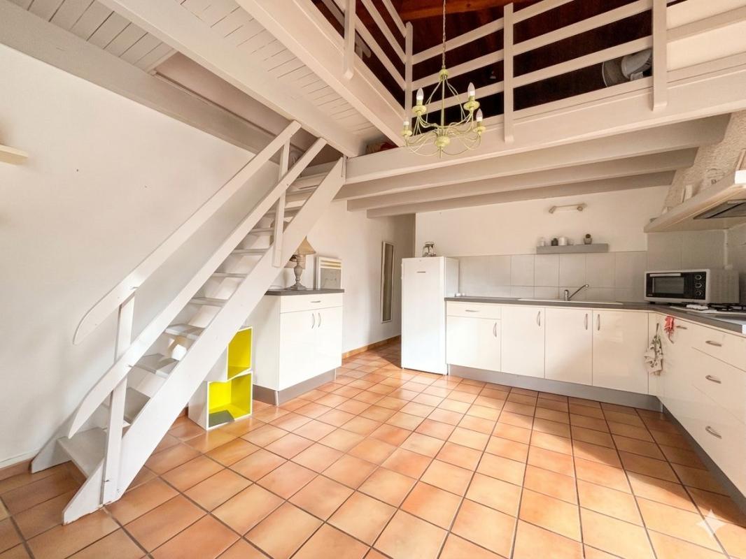 L'appartement se compose d'une pièce de vie lumineuse avec cuisine ouverte, aménagée et équipée, un dégagement desservant un WC indépendant, une salle de bain et une chambre. Il dispose également d'une mezzanine offrant un espace couchage supplémentaire