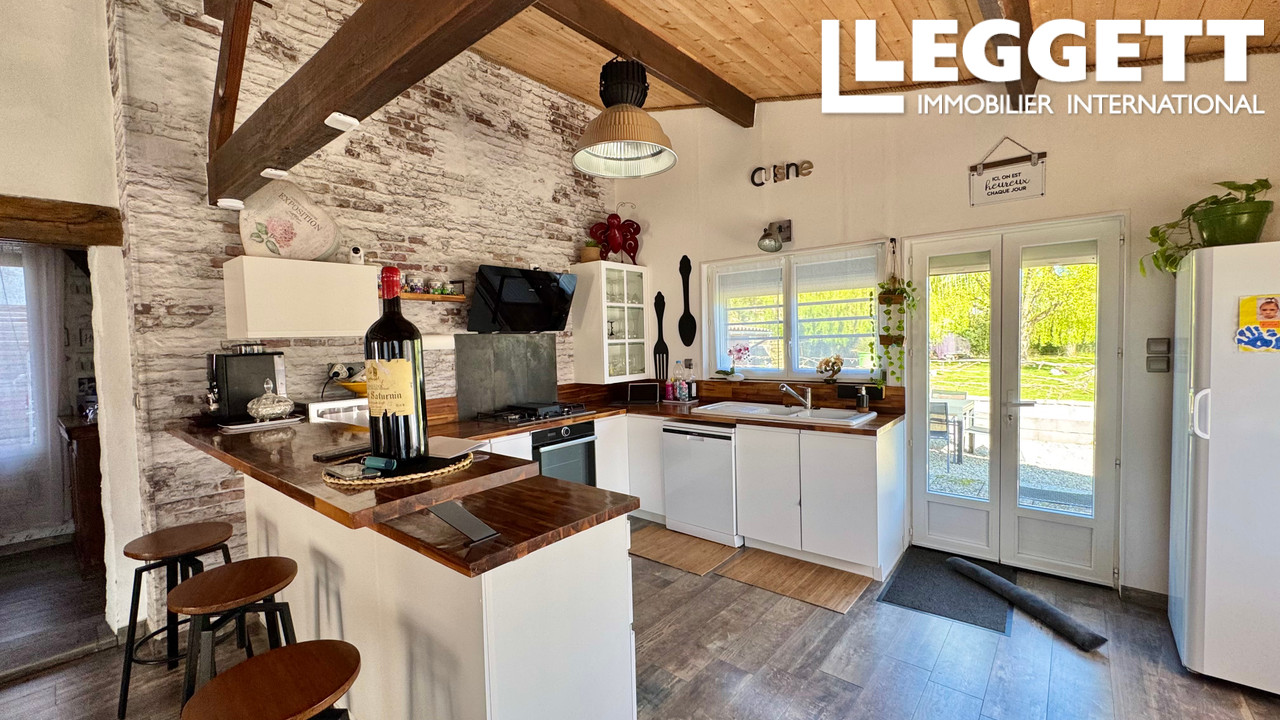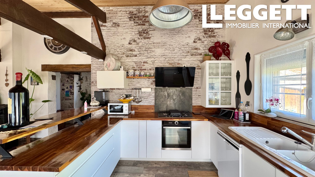 La cuisine, récente et entièrement équipée, est complétée par une arrière-cuisine et une buanderie/cuisine d'été. À l'étage, trois chambres lumineuses et des combles aménageables permettant de créer une chambre supplémentaire.
