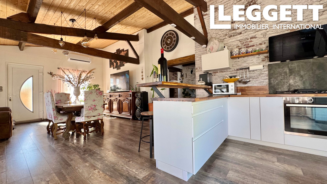A43785SNM82 - Située dans un village agréable avec commerces à pied (boulangerie, supermarché), cette maison d'environ 140 m² offre un cadre de vie pratique et confortable. Elle se compose d'une belle pièce de vie lumineuse de 45 m² avec cuisine ouverte et accès direct à la terrasse et au jardin, ainsi qu'un second salon spacieux avec poêle à bois.