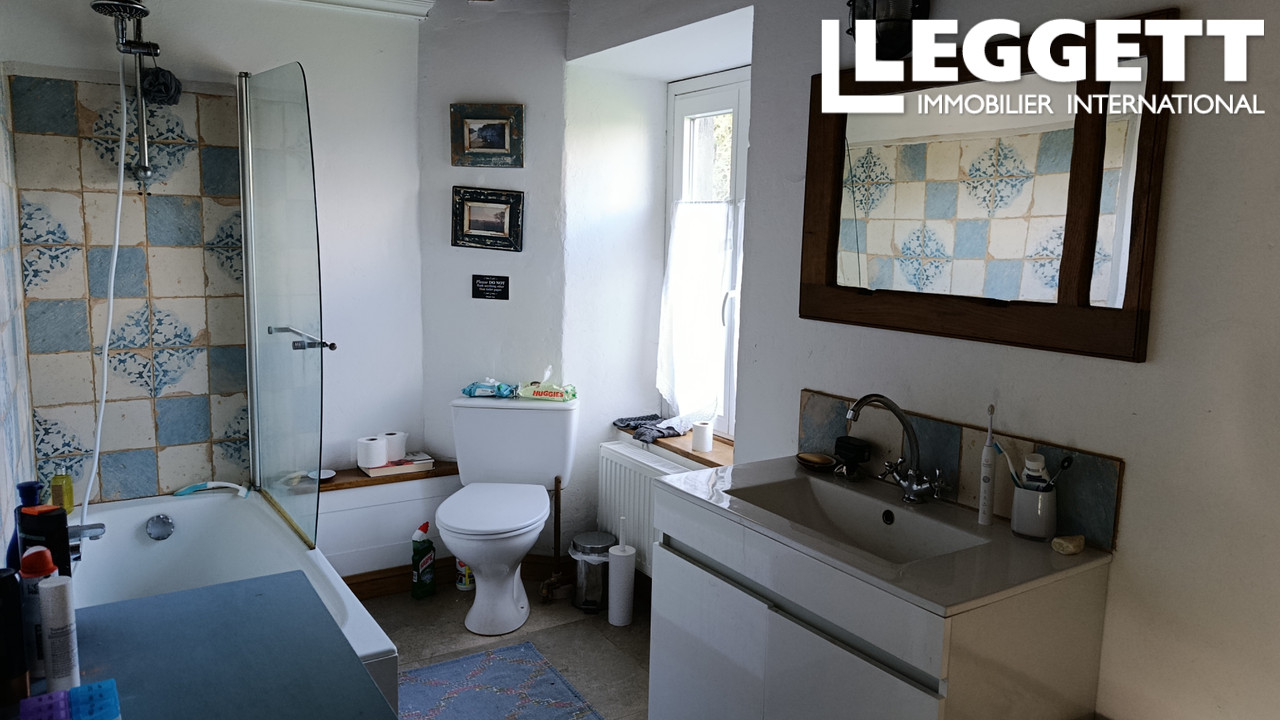 A43765EMW14 - Une Maison d'habitation en pierre sous ardouise, comprenant au RDC - salle de sejour avec cheminee et coin cuisine, debarras avec w.c. et lavabo.