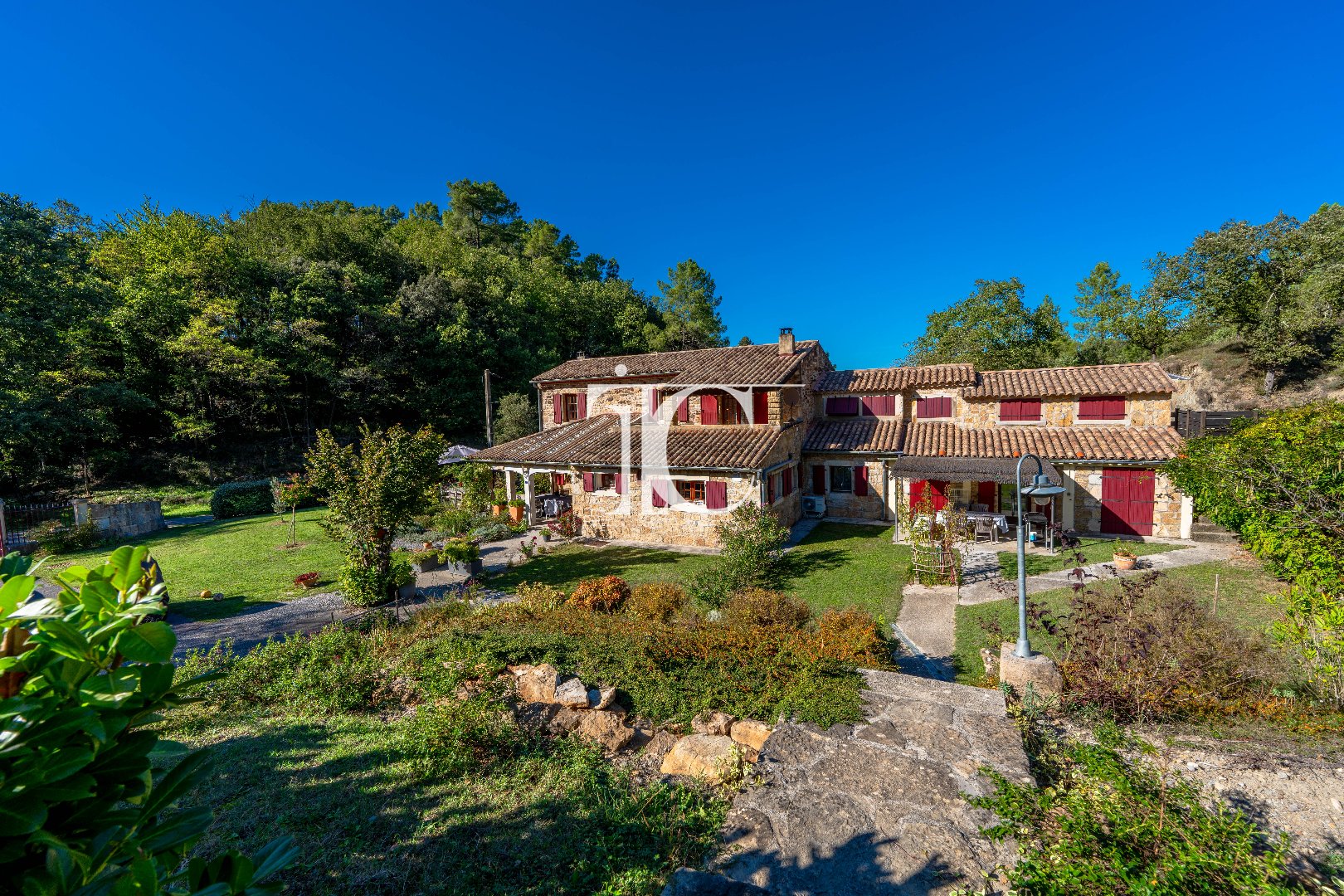 07140 Proche les Vans, propriété d'exception entourée de 3 hectares de prairies et de bois. Nichée dans un environnement paisible, loin de toute nuisance, cette superbe propriété offre un cadre de vie unique.