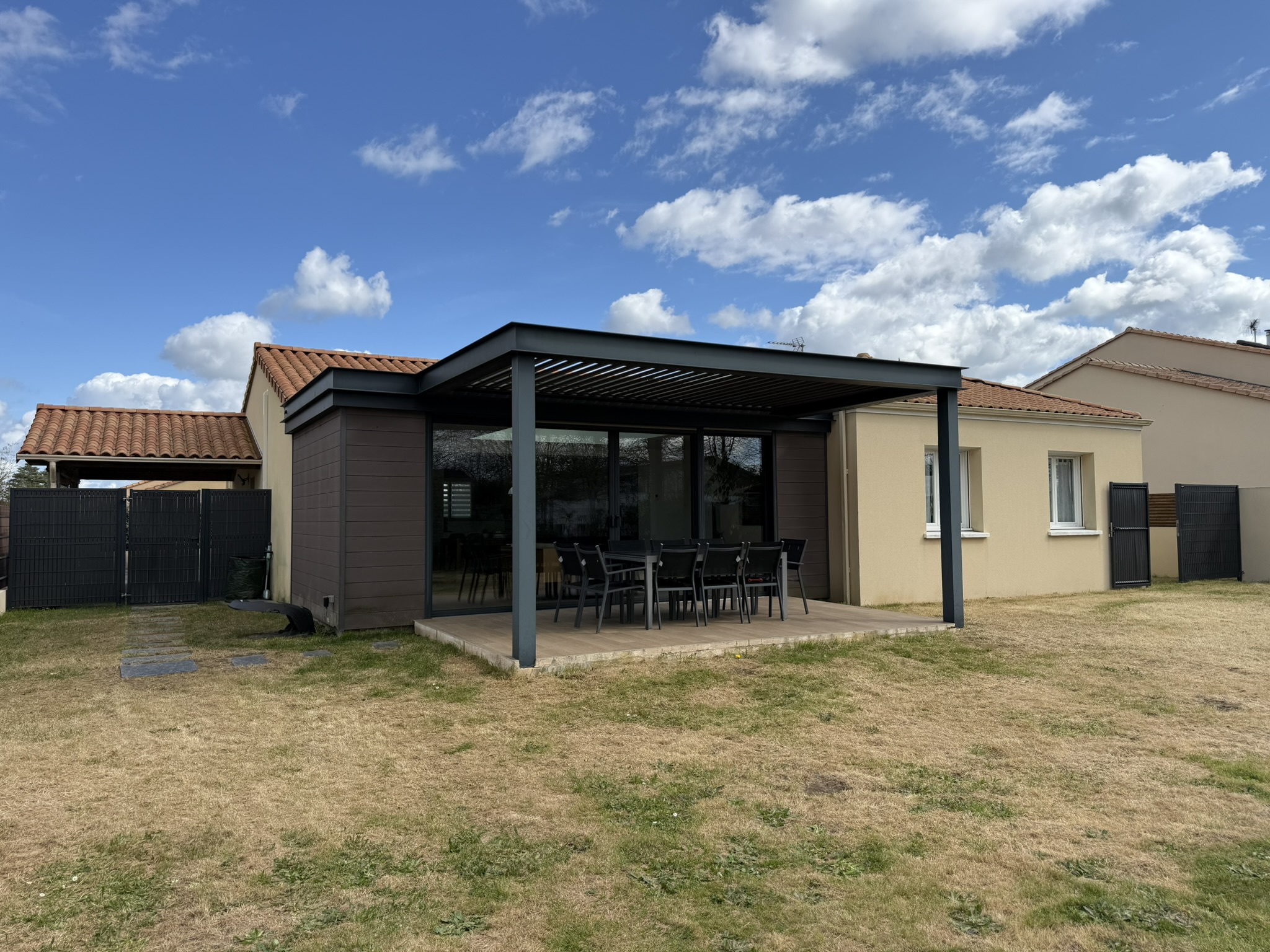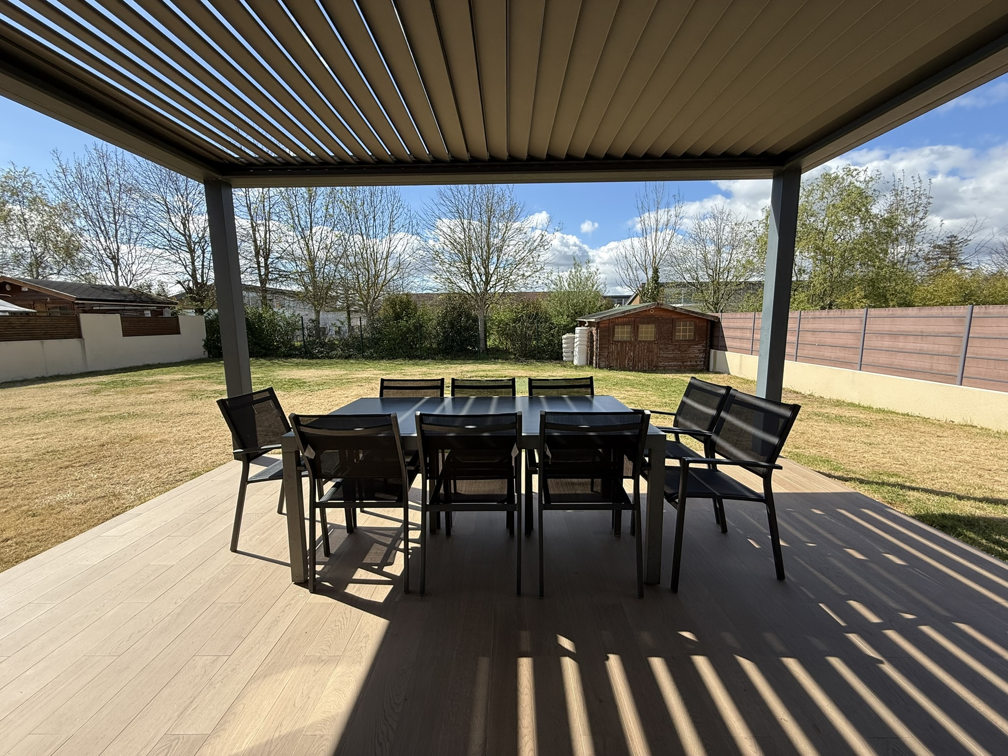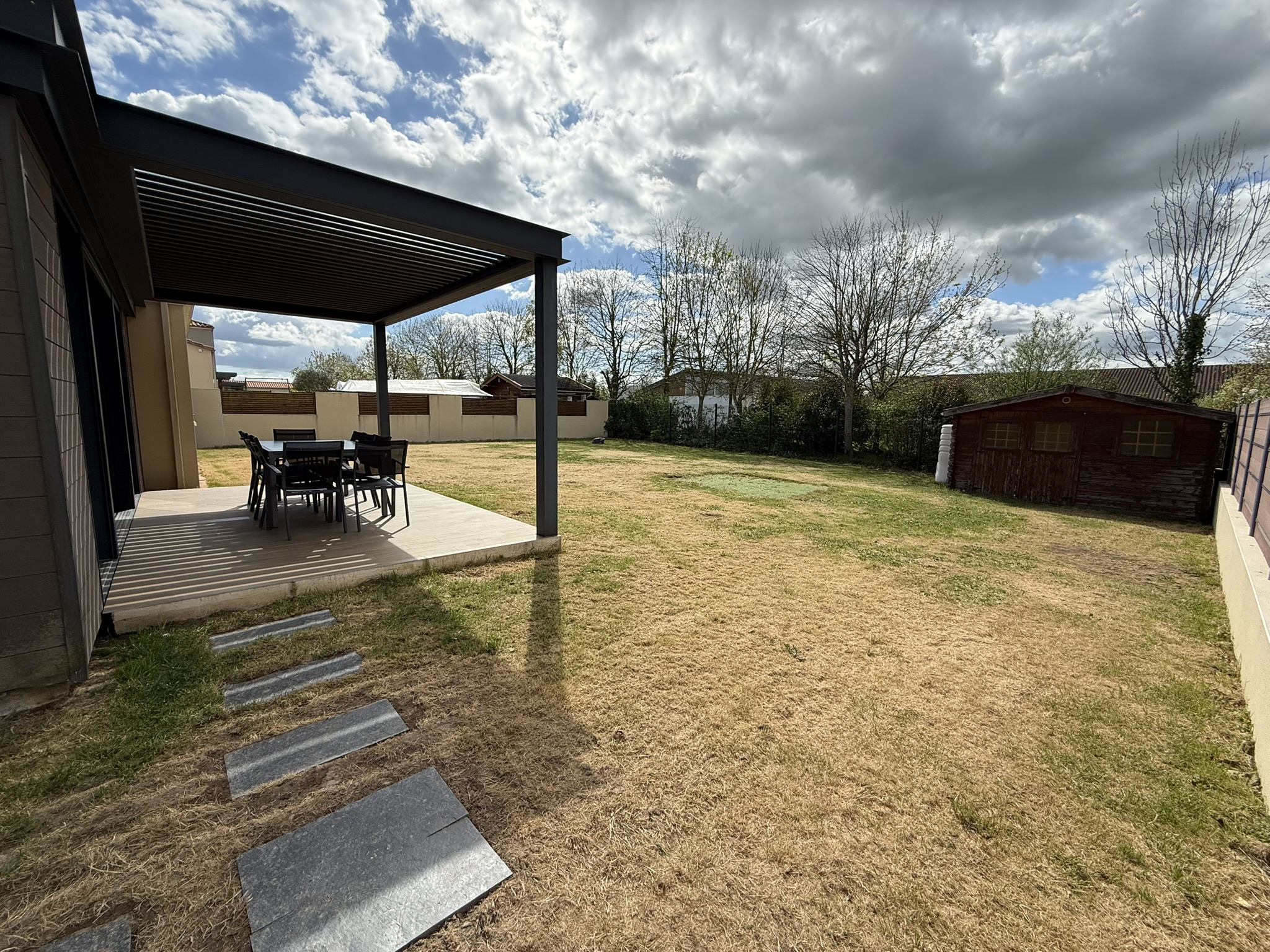 > Une parcelle de terrain entièrement clôturée de 700m2 et une terrasse avec sa pergola bioclimatique motorisée (année 2019).
