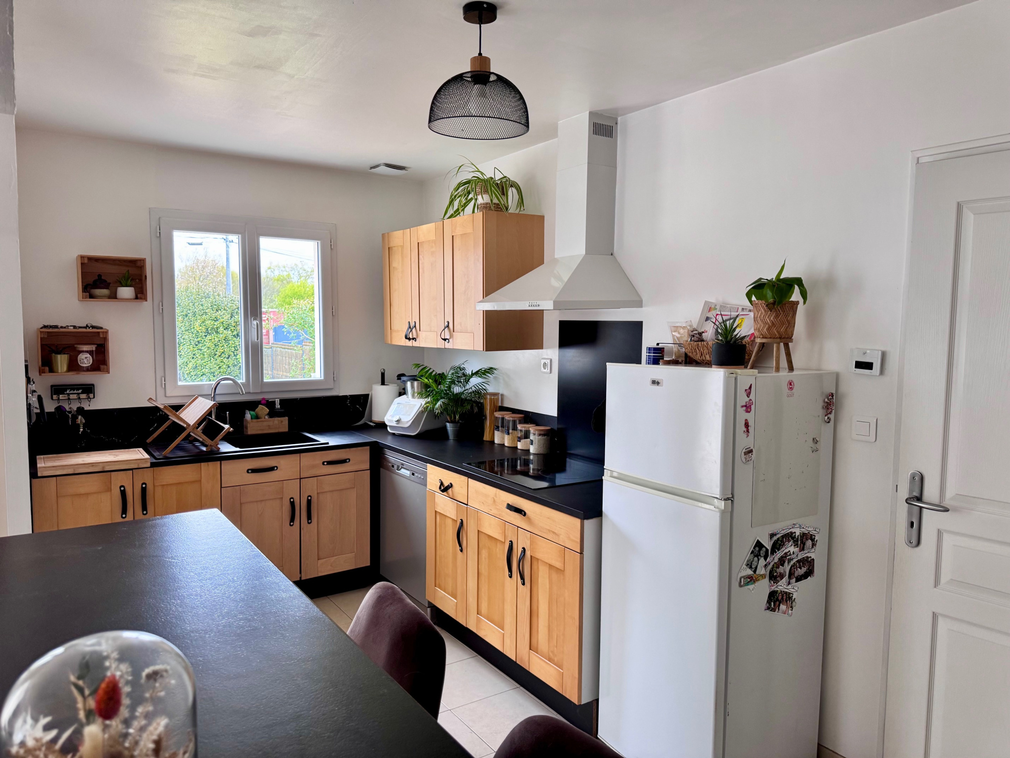 Située tout proche du bourg et de ses commodités, cette maison lumineuse et de plain pied comprend une cuisine meublée ouverte sur un séjour équipé d'un poêle à bois, un espace buanderie/arrière cuisine, 3 chambres avec placard, une partie dressing, un bureau, une salle de bains avec douche et un wc séparé.