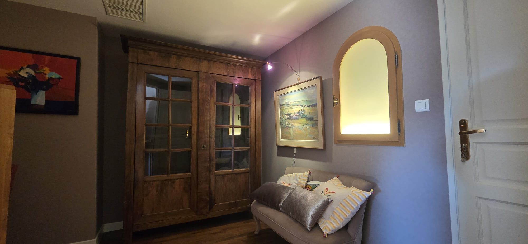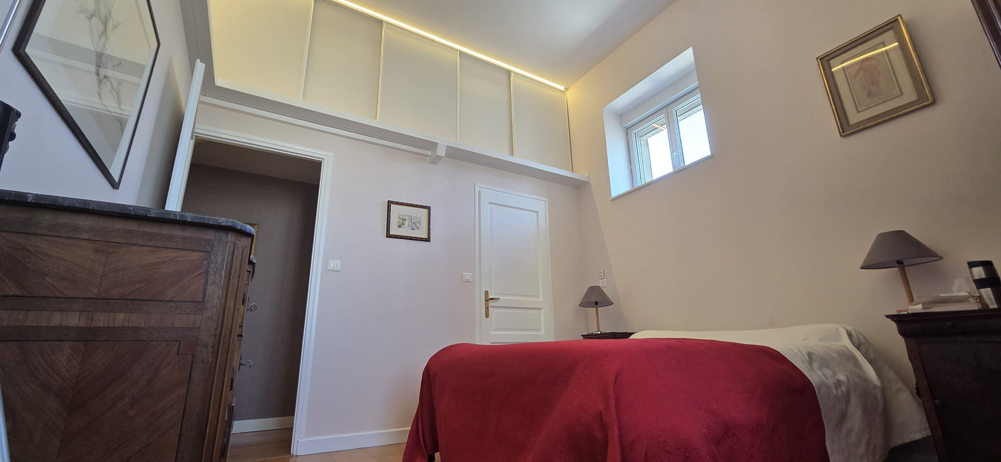 Le véritable atout de ce bien réside dans l'aménagement de l'ancien palier, astucieusement transformé en bureau ou chambre d'amis. Cet espace a par ailleurs été conçu pour accueillir un ascenseur privatif : un accord de principe avait initialement été obtenu pour sa mise en oeuvre. Si la copropriété venait à l'entériner lors d'une assemblée générale, la plus-value sur la valeur vénale de l'appartement serait très significative.