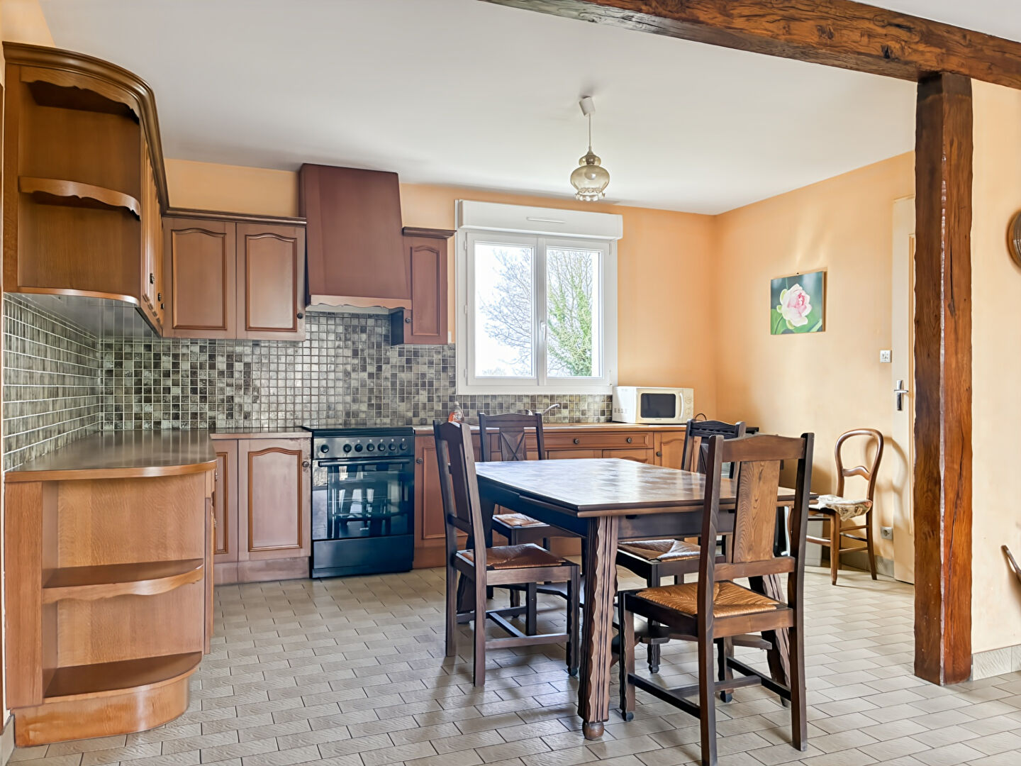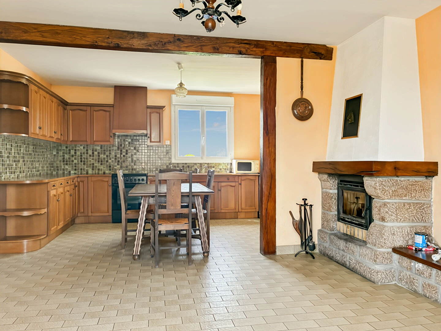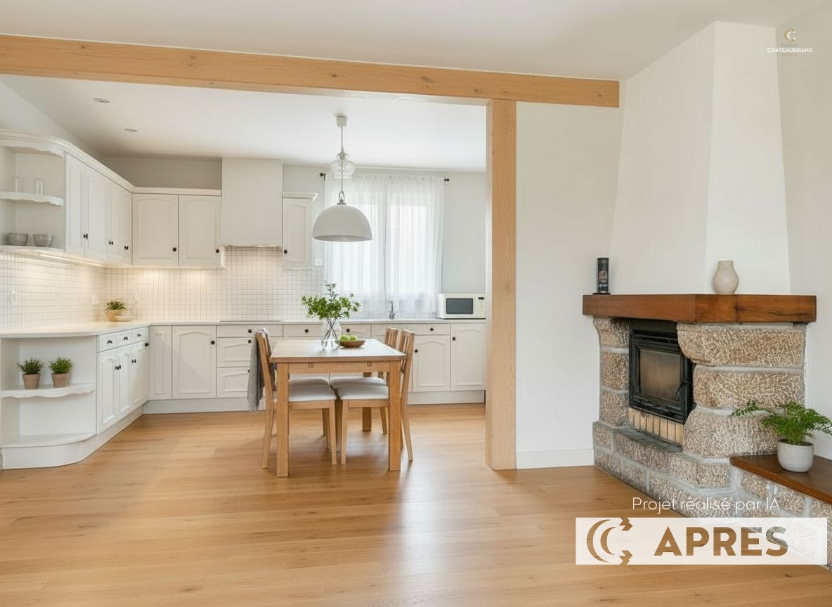 Dès l'entrée, vous serez séduit par une spacieuse cuisine avec espace repas de 29 m², agrémentée d'une cheminée avec insert, parfaite pour des moments conviviaux. Le salon lumineux de 23,27 m² complète agréablement l'espace de vie.