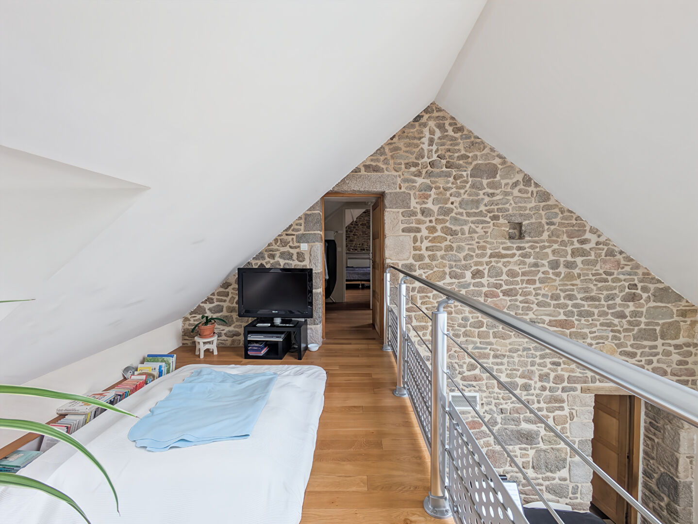 A l'étage: une grande chambre avec salle d'eau/WC, coin dressing, une deuxième chambre et une salle de bain.