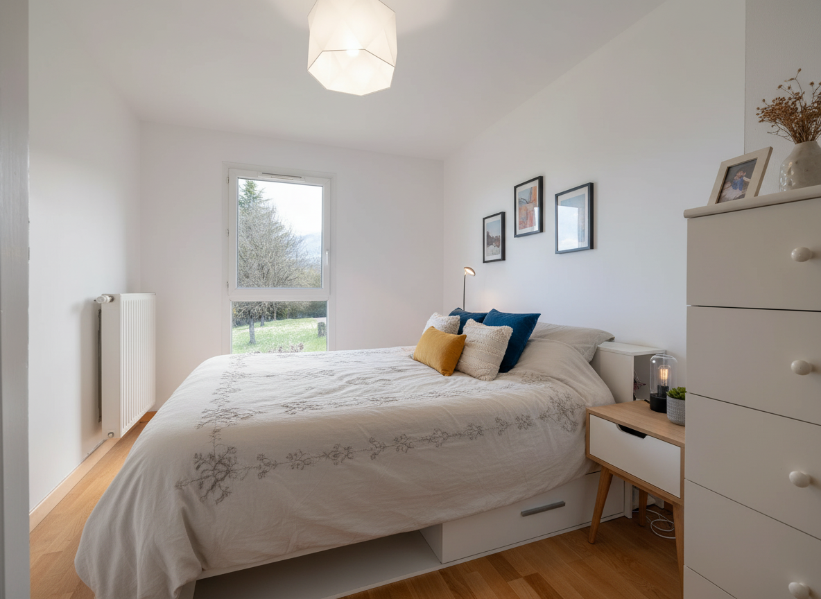 Dès l'entrée, vous découvrirez un agencement fonctionnel menant à trois belles chambres avec parquet et rangements intégrés, dont une suite avec salle d'eau privative idéale pour plus de confort au quotidien.