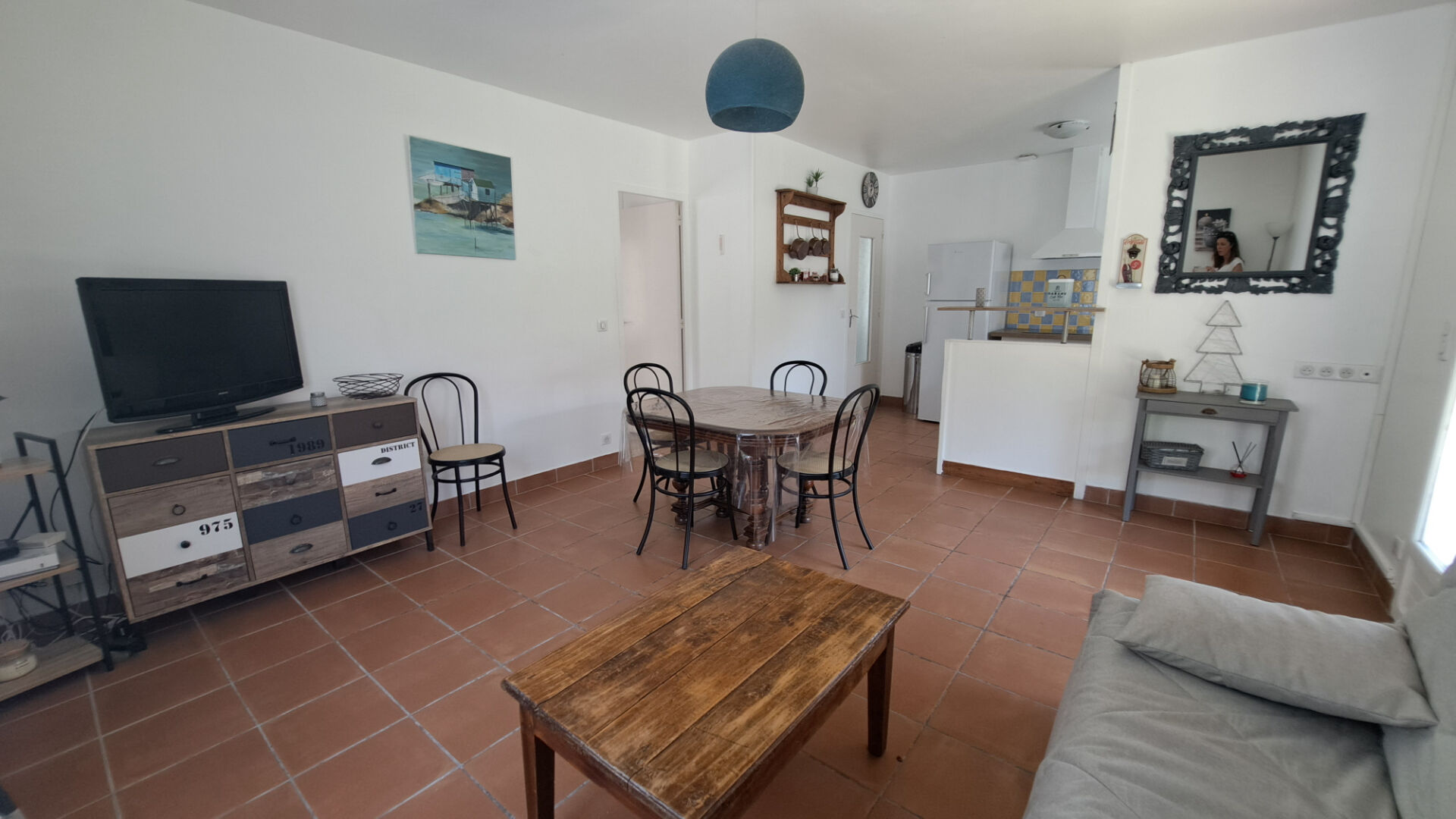 Square habitat vous présente une maison de plain pied très bien entretenue avec piscine sécurisée et jardin, située dans un environnement recherché pour son calme et sa proximité immédiate de la plage de Nauzan (600 m).
