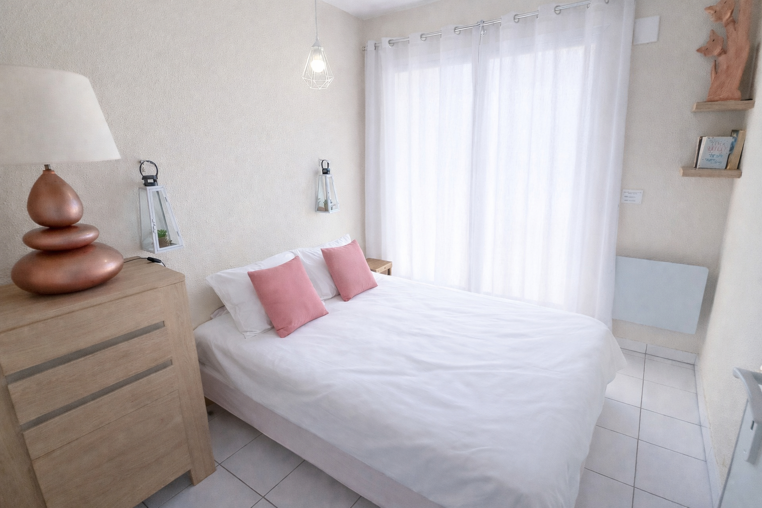 L'appartement, fonctionnel et en excellent état, se compose d'un séjour avec cuisine ouverte et espace buanderie, de deux chambres, d'une salle de bains et d'un WC indépendant.