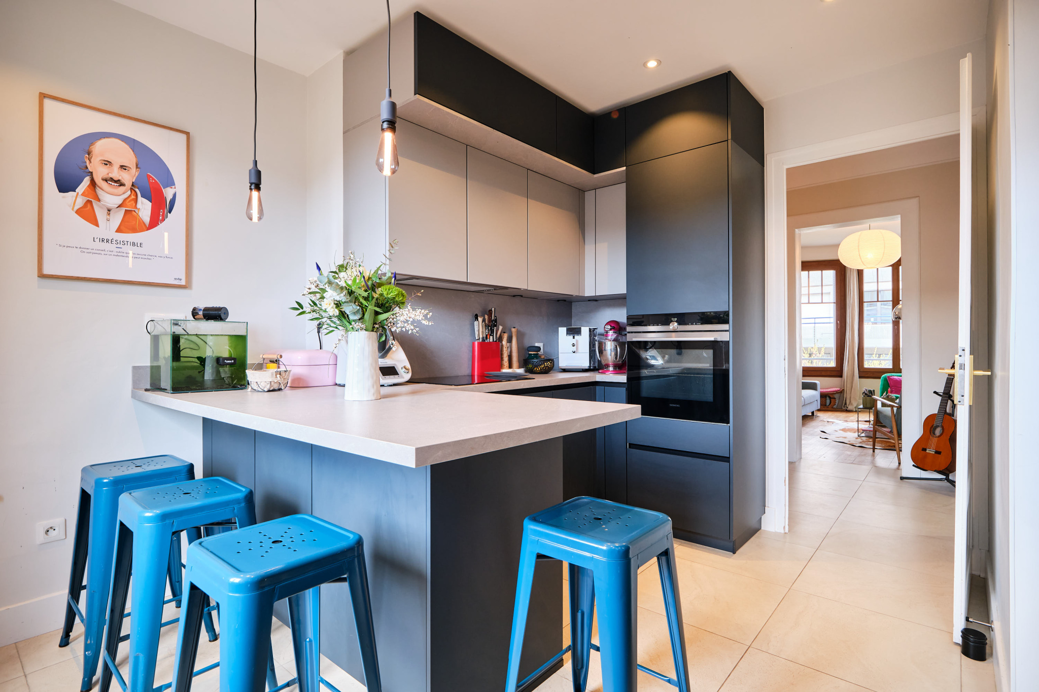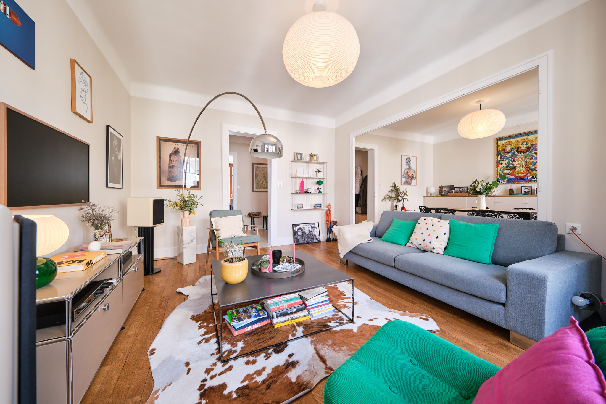 D'une surface de 92 m2, cet appartement traversant de caractère offre de beaux volumes et allie avec élégance le cachet de l'ancien à une rénovation récente, sublimée par une décoration actuelle et soignée.