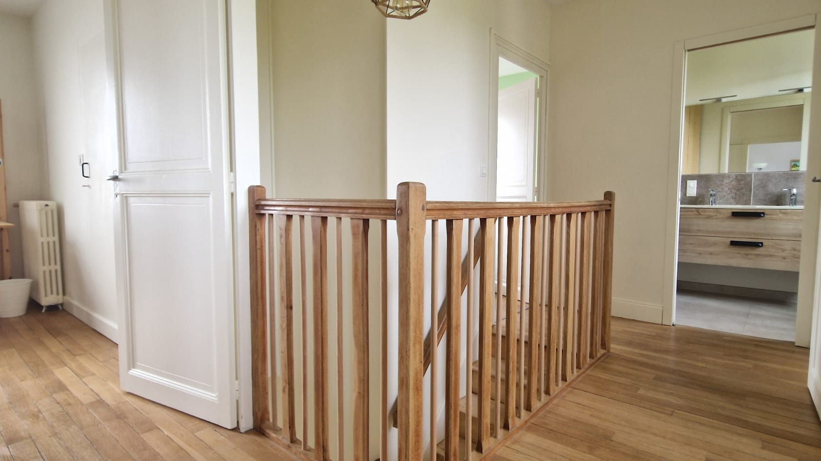 Le RDC se compose de l'entrée, une suite parentale (salle d'eau + WC), cuisine SCHMIDT équipée et pièce de vie. Deux autres chambres à l'étage, salle d'eau, WC et bureau ou chambre d'appoint pour enfant. Jardin clos, sous-sol total, portail pour garer vos véhicules.