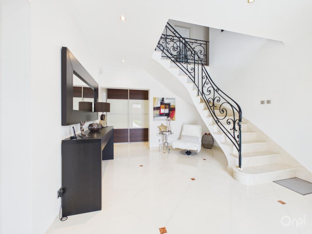Nous vous proposons une splendide demeure édifiée en 2008, 350 m²habitable et 1269 m² de terrain. Elle offre calme et confort. La maison se distingue par son hall cathédrale, garantissant une première impression de grandeur et un escalier en marbre blanc avec rambarde en ferronnerie d'art sur mesure.